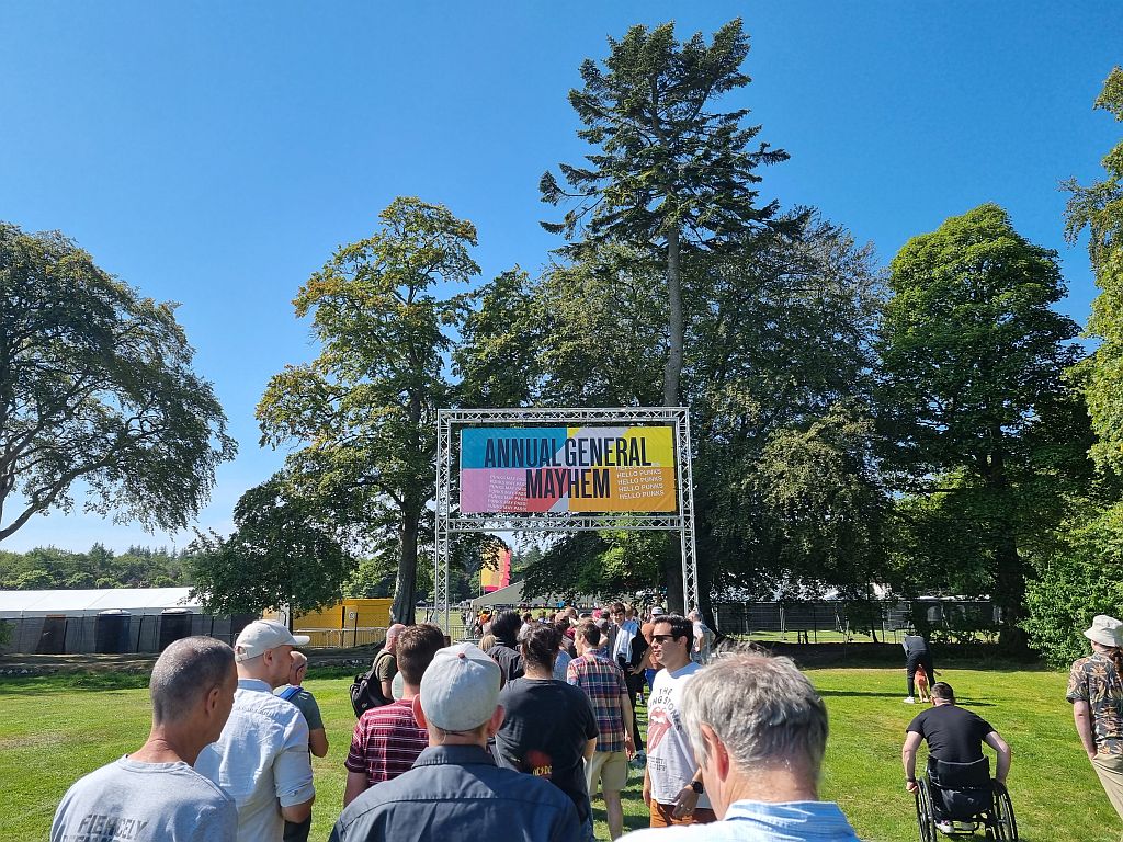 AGM Day. Bislang waren die AGMs in Aberdeen ja alle im nördlich gelegenen AECC, diese sollte zum ersten Mal auf einer Freifläche westlich der Stadt abgehalten werden. Was, angesichts des typischen schottischen Wetters, eine ganz schön gewagte Sache war.