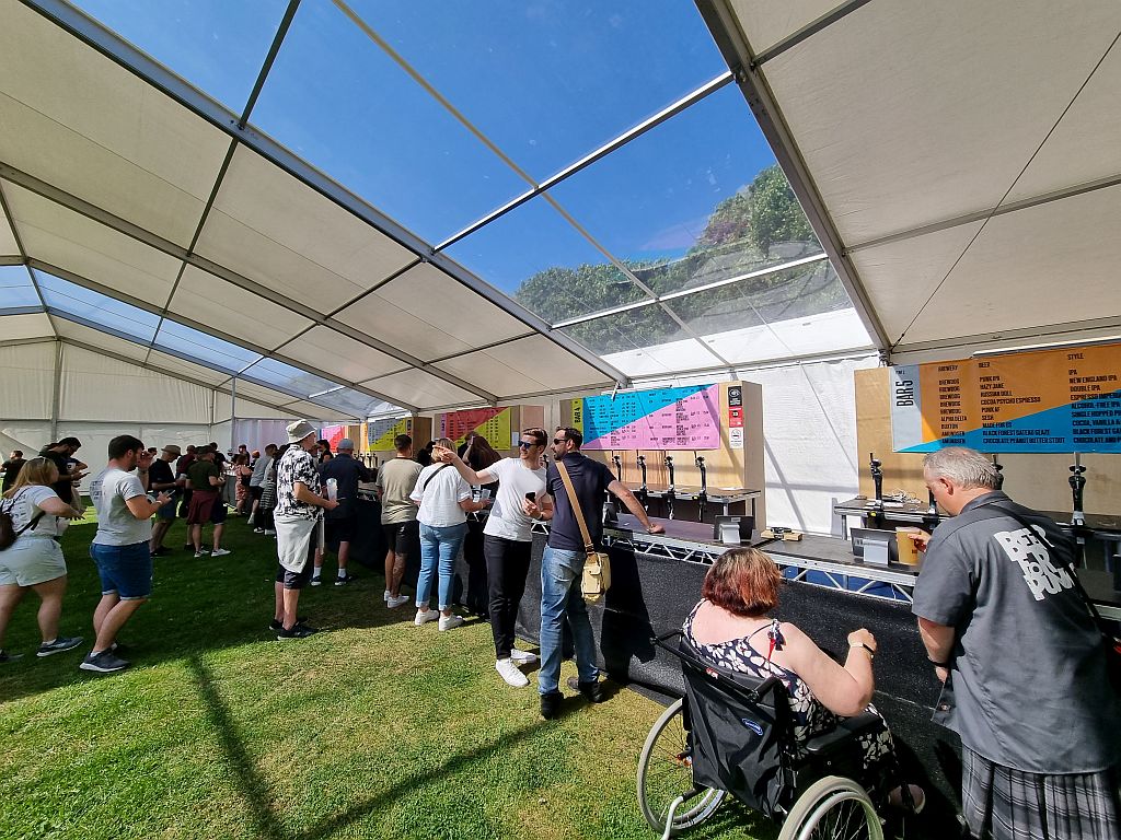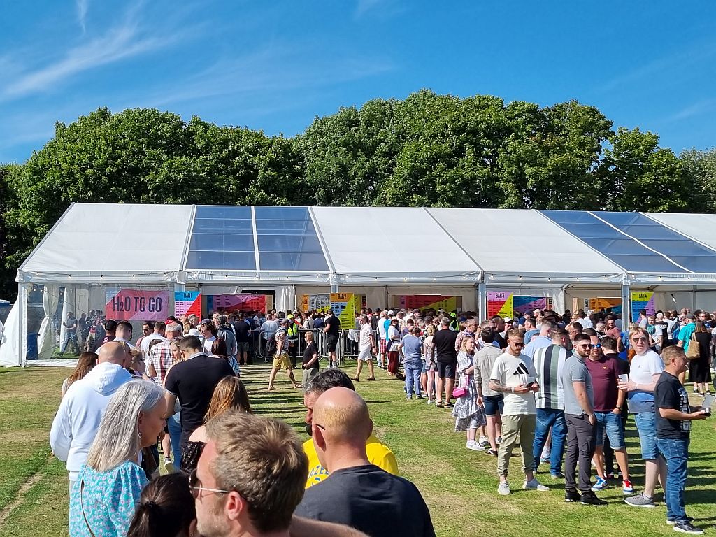 Es gab 10 Bars mit verschiedenen Bieren, die ganze Veranstaltung war cash-less, also musste man mit Karte oder in einer App verfügbaren Barcodes bezahlen. Was sich erst einmal schön anhört, aber im Verlaufe des Tages noch zu Problemen führen sollte.