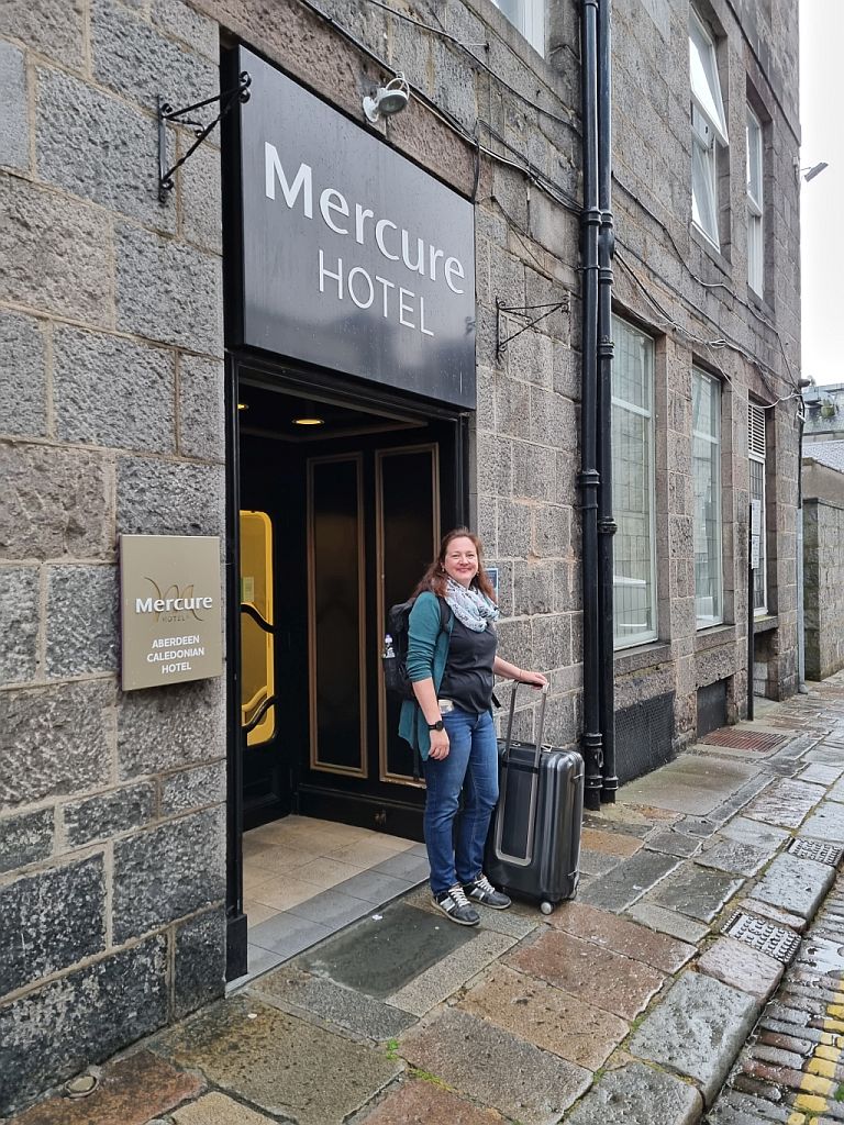 Ein neuer, sehr früher Morgen in Aberdeen. Und wir haben nichts besseres zu tun, als unsere Koffer zu schnappen und zum Hinterausgang des Hotels zu gehen und dort auf das Taxi zum Flughafen zu warten.