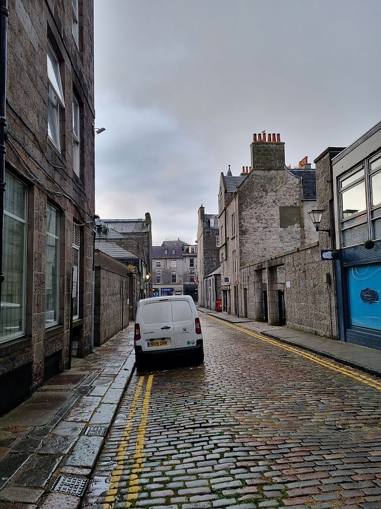 Ach so, bezahlt haben wir vorher auch noch. Aber so ist das halt, jeder Urlaub, egal ob lang oder kurz, geht irgendwann zu Ende. Und so standen wir auf einer typischen kleinen Nebengasse Aberdeens im leichten Regen.