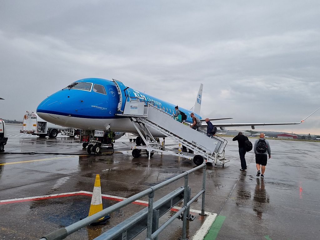 Auch die war schnell erledigt und wir warteten, wie immer in Aberdeen ohne Lounge, darauf, dass wir durch eine der Türen zu dem bereitstehenden KLM Embraer Flugzeug gehen dürfen.