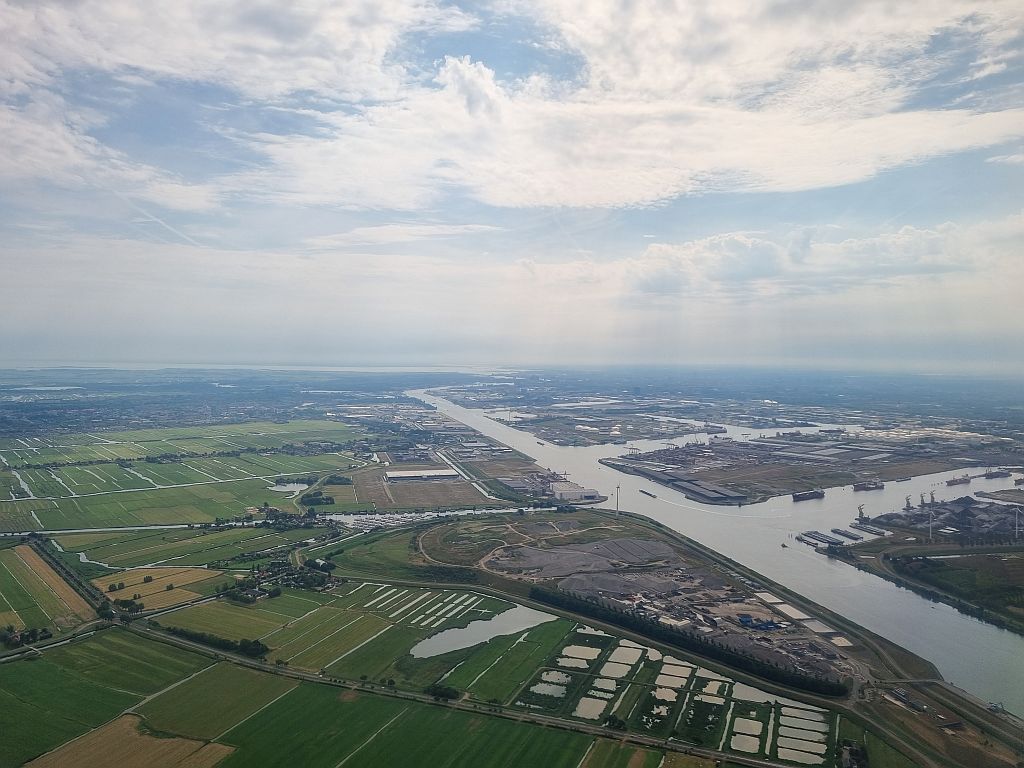 Der Vorteil des Weges von Aberdeen nach Amsterdam ist ja, dass es quasi nur über die Nordsee geht und schon ist man fast da. Bedeutet auch: Wenn man wieder Land sieht, geht es eigentlich schon zum Landeanflug.