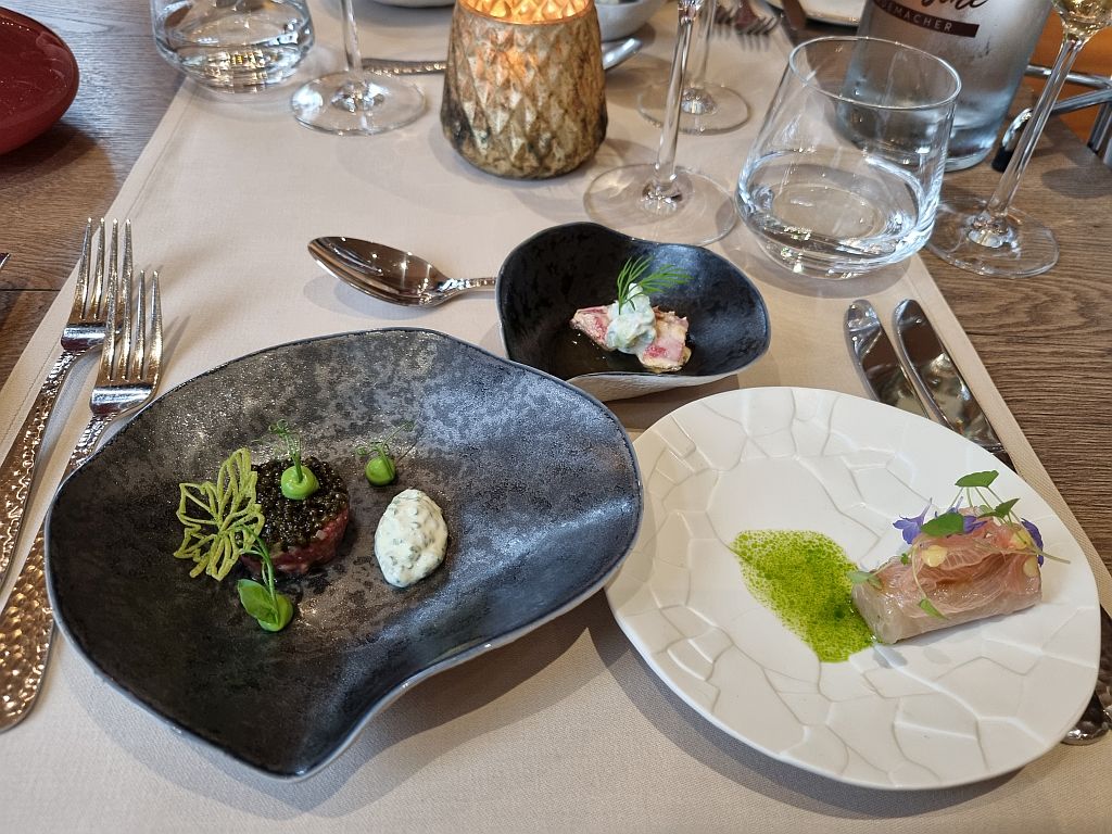 Der Gruß aus der Küche bestand dieses Mal aus drei Tellern.