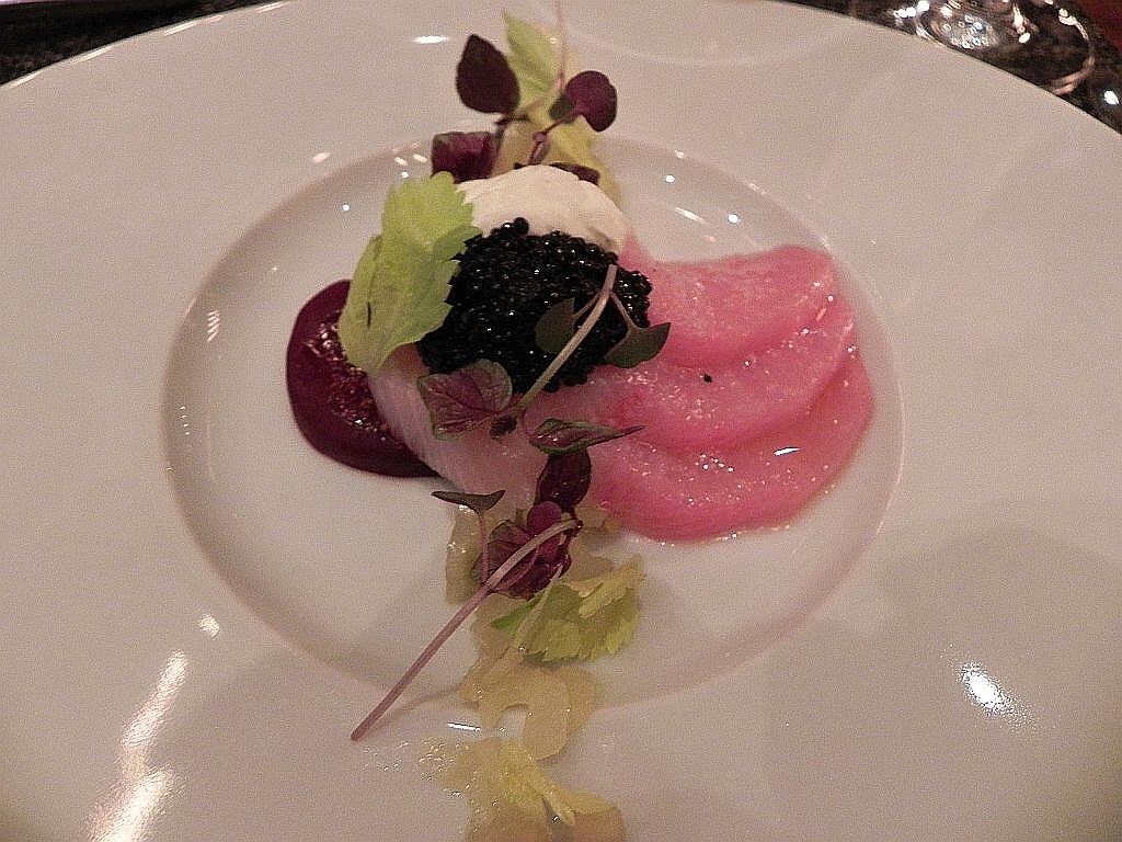 Als Vorspeise gab es Thunfisch-Sashimi mit Kaviar und Gemüse für Jens und Tintenfisch für Meike. Bei letzterem ist das Foto nix geworden.
