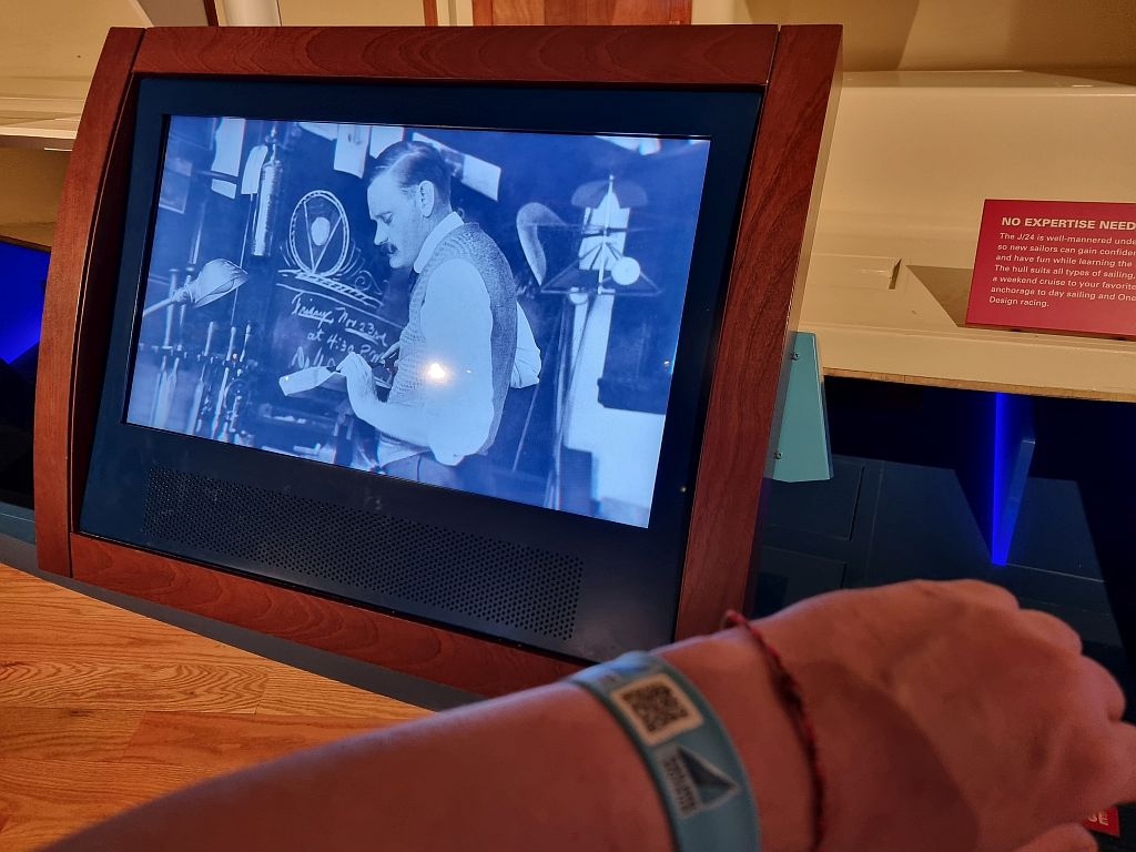 Am Eingang bekommt man ein Armband mit einem QR Code, über den man sich an 10 verschiedenen Stationen an Spielen zum Thema „Segeln“ austoben und damit seinen virtuellen „Segelschrank“ mit Trophäen füllen kann.