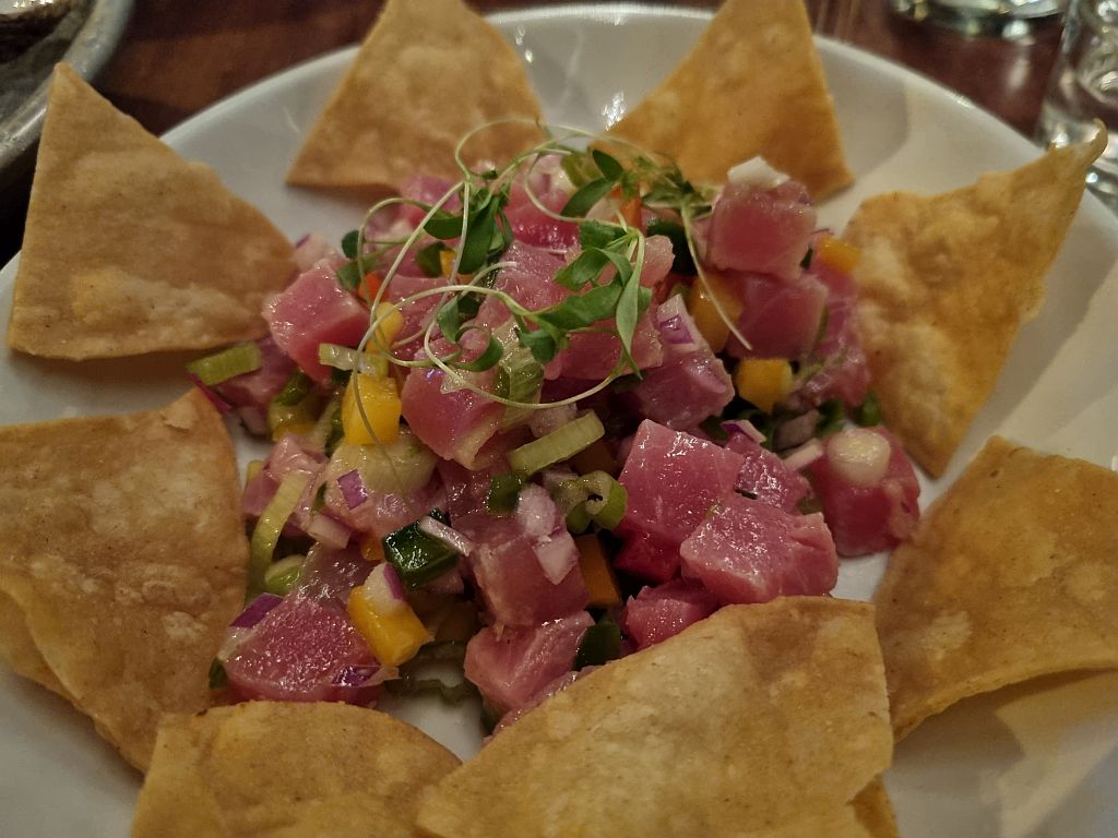 Die Tuna-Ceviche war dagegen etwas enttäuschend. Die Textur des Thunfisches war zu trocken und passte nicht so richtig zur Zitrus-Note. Und die Chips waren auch nicht so gut.