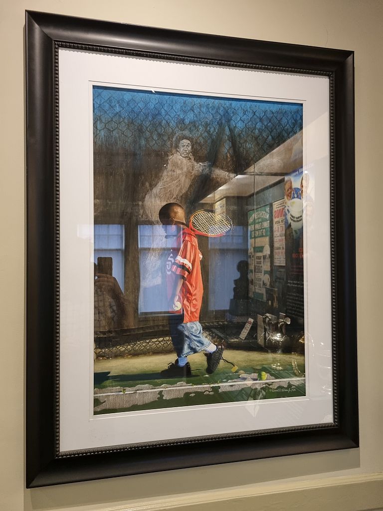 Auch Bilder über Tennis als Sportart (hier ein Junge, der im Schatten von Arthur Ashe groß werden kann) waren Teil der umfangreichen Ausstellung.