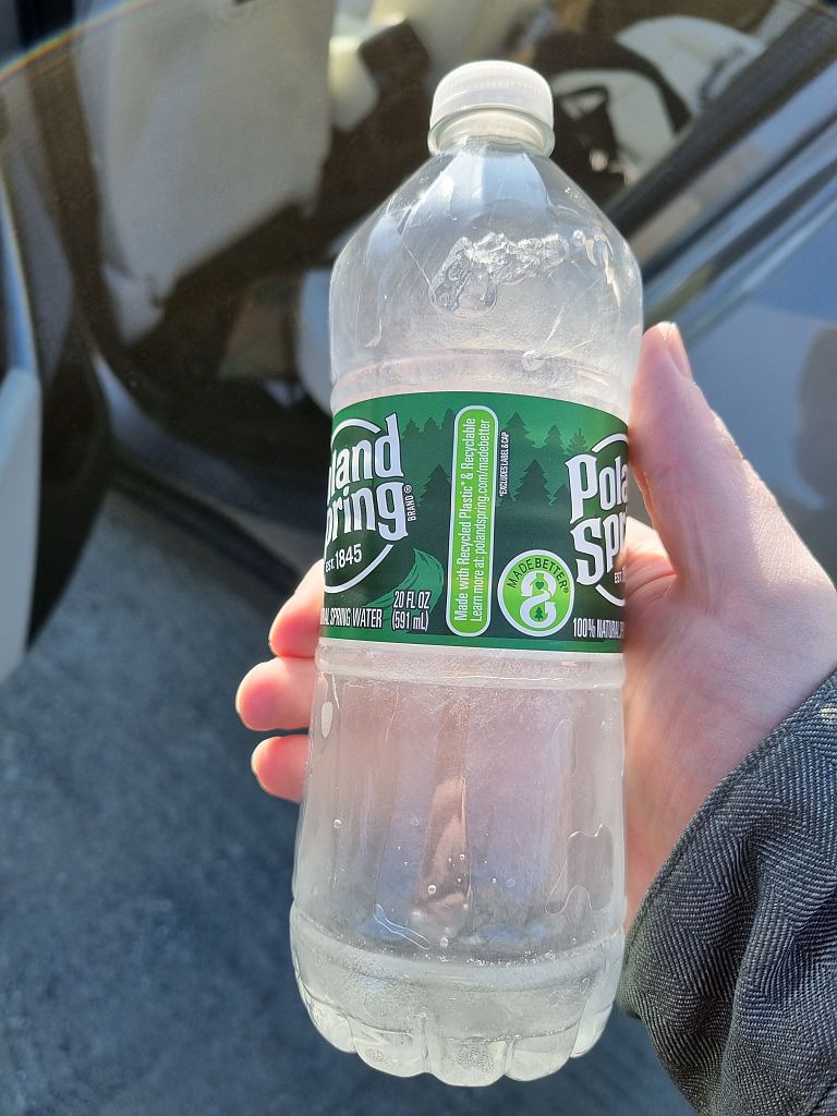 Draußen wurde es ziemlich schnell ziemlich kalt. Sehr kalt. Sehr, sehr kalt. Sinnbildlich eine Wasserflasche, die wir im Auto liegen hatten.