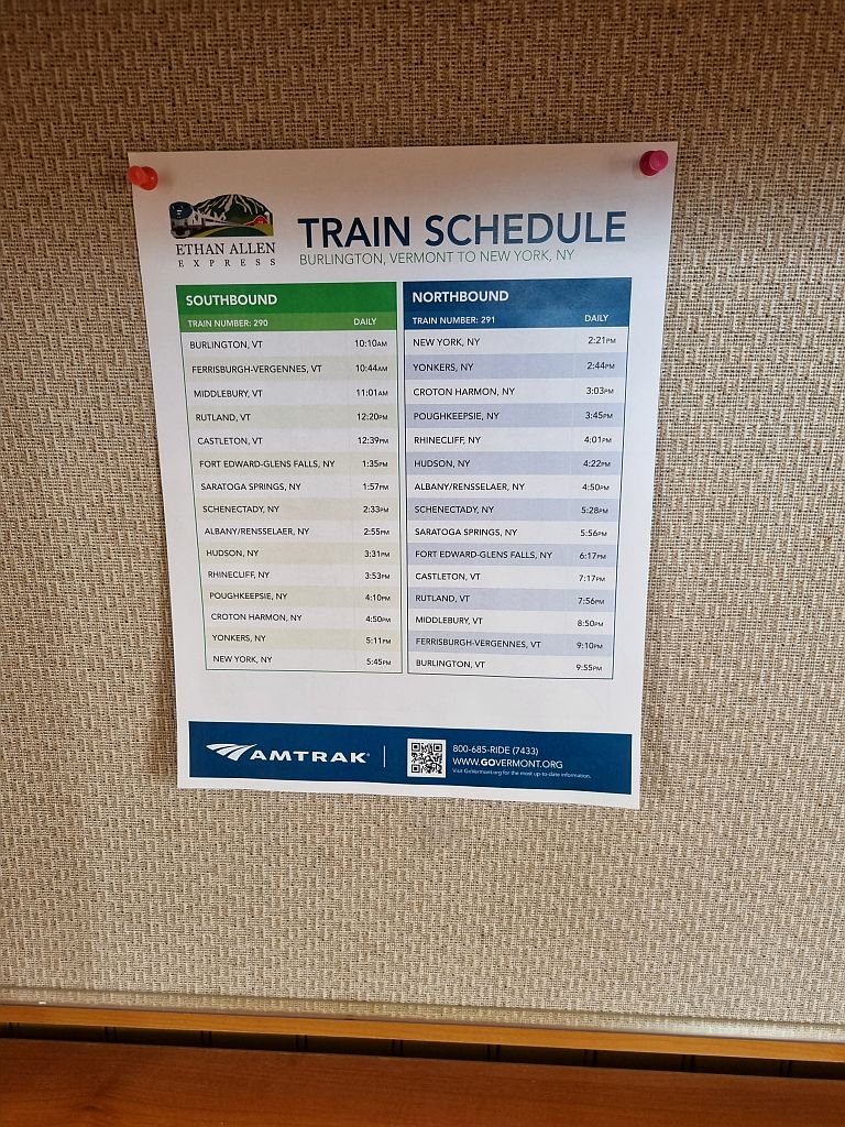 Also: Der eine Zug am Tag nach New York kommt hier vorbei und hört auf den Namen „Ethan Allen Express„.