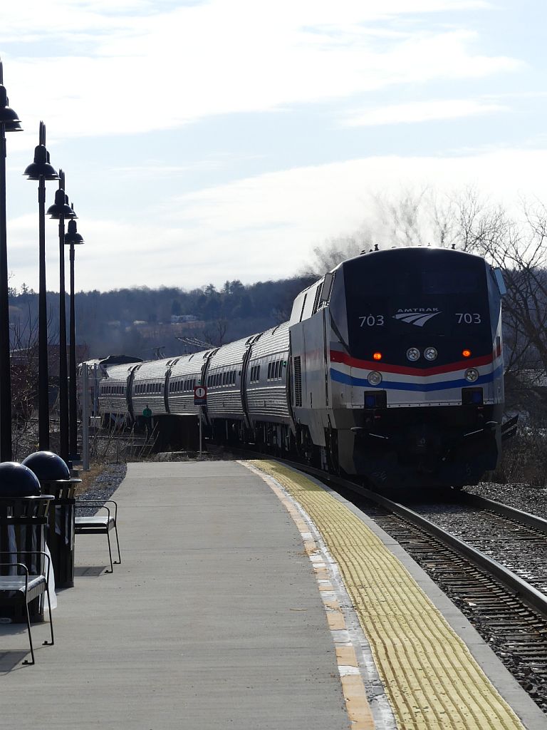 Aber egal – für ein paar Fotos war das schon gut so und dann fuhr der Zug weiter auf seine lange Reise nach New York. Wir blieben auf dem kalten und jetzt wirklich leeren Bahnsteig zurück.