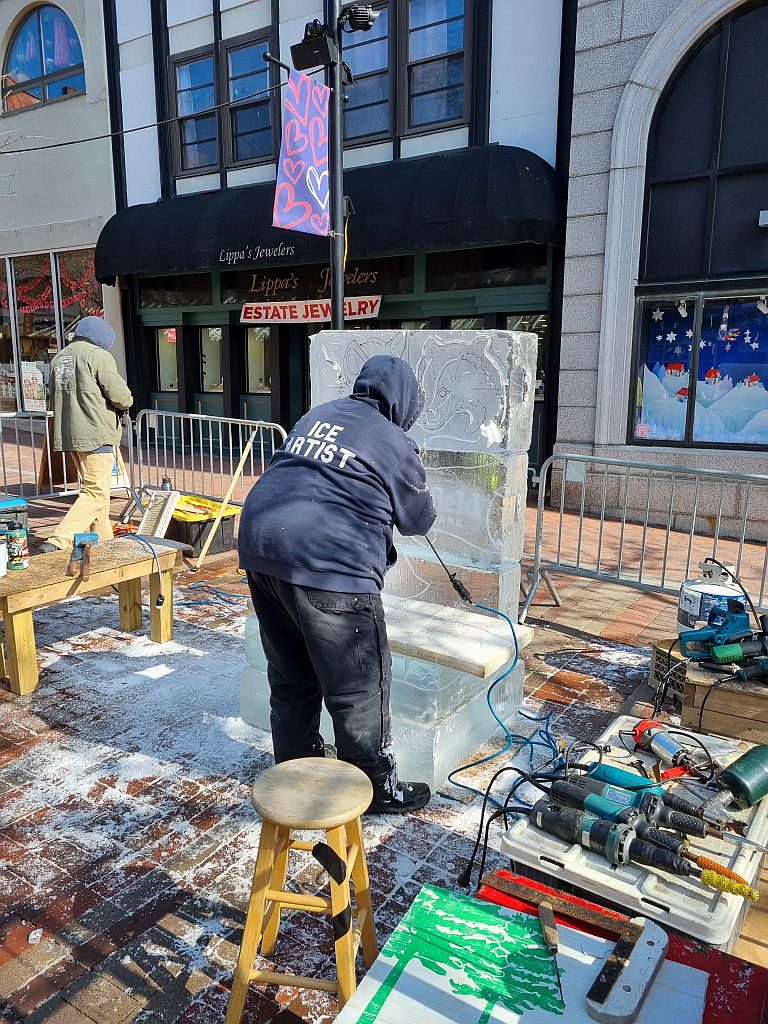 Die Menschen, die ein Stück weiter Eisskulpturen machten, wollten sich dagegen partout nicht streicheln lassen.