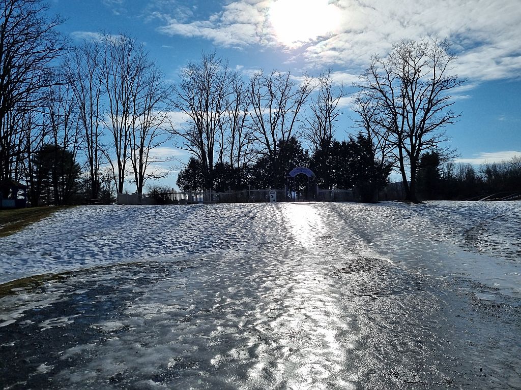 Komplett zugefroren. Was allerdings bei schönem Winterwetter gar nicht so schlimm war. Naja, bis darauf, dass wir eben kein Wasser mehr hatten.