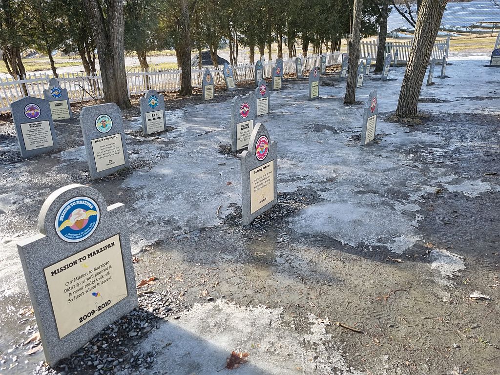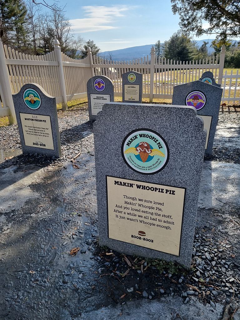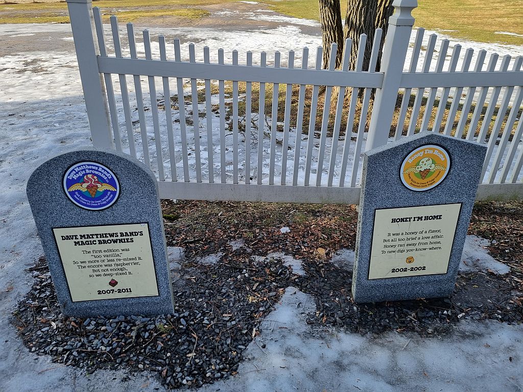 Wo man viele Eissorten kreiert und auch viel ausprobieren möchte und es auch tut, kann es im übrigen auch sein, dass auch mal was schief läuft. Und für die schlimmsten Kreationen oder die, wo man sich auch ein bisschen ärgert, dass sie nicht mehr verkauft werden, gibt es hier auch was: Den Friedhof der Eissorten!