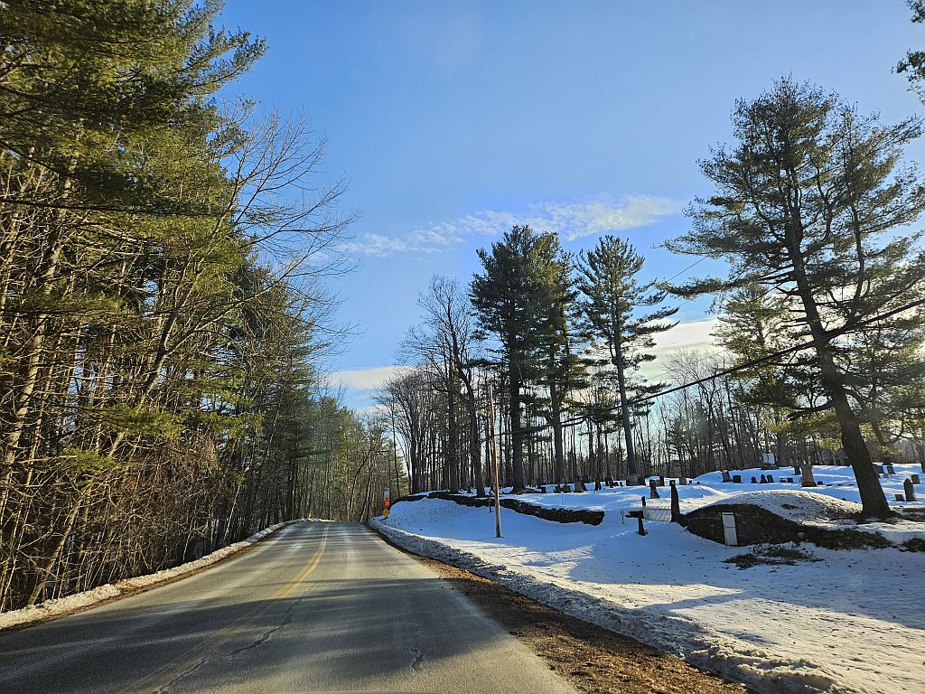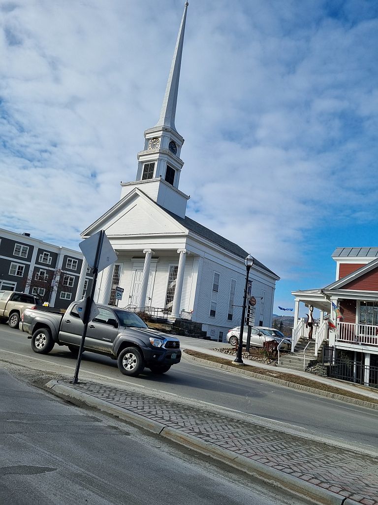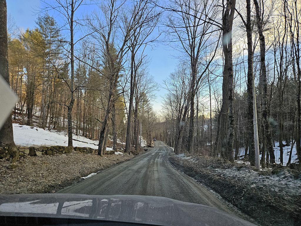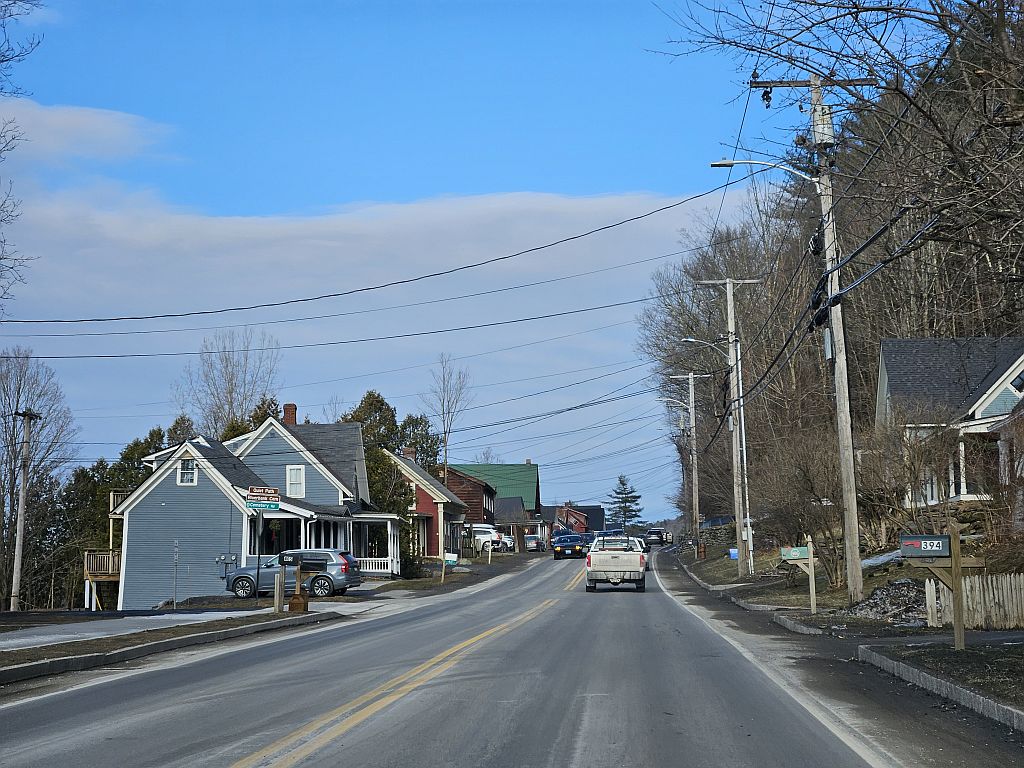 Außen kalt, innen kalt – Zeit für ein wenig Autofahren. In der ursprünglichen Planung haben wir uns noch für den in der Nähe befindlichen Ort Stowe interessiert. Da das Abendessen erst um 18:30 beginnen sollte und der Tank ja voll war, haben wir die 30 Minuten investiert.