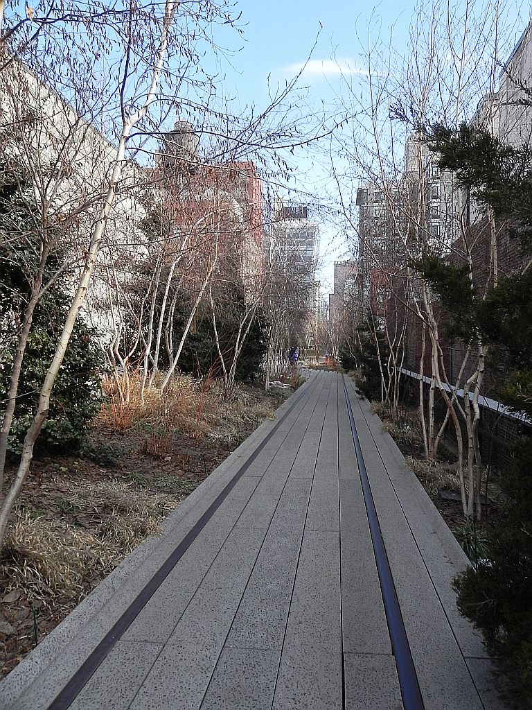 Anfang 1999 gründete sich eine Gruppe „Friends of the High Line“, die sich dafür einsetzte auf der Hochbahn einen Park einzurichten. Diese Gruppe wurde von vielen Künstlern und Prominenten unterstützt und in 2004 wurde beschlossen, für 50 Mio. US Dollar eine Parkanlage zu errichten. 2009 war der erste Abschnitt für die Öffentlichkeit zugänglich. Also, die Treppe hoch und anschauen.