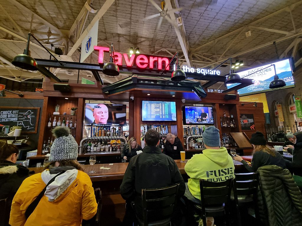 Wir hatten einen echt großzügigen Puffer geplant und waren dann etwas vom Mangel an Sitzplätzen genervt als wir überlegten, was wir jetzt die Stunde bis zur Abfahrt machen sollen. Als wir dann an der Anzeigetafel entdeckten, dass die Züge nach New York allesamt Verspätungen hatten und einer sogar schon seit 2 1/2 Stunden immer noch nicht abgefahren ist, fanden wir, dass es Zeit sei für ein Verspätungsbierchen.