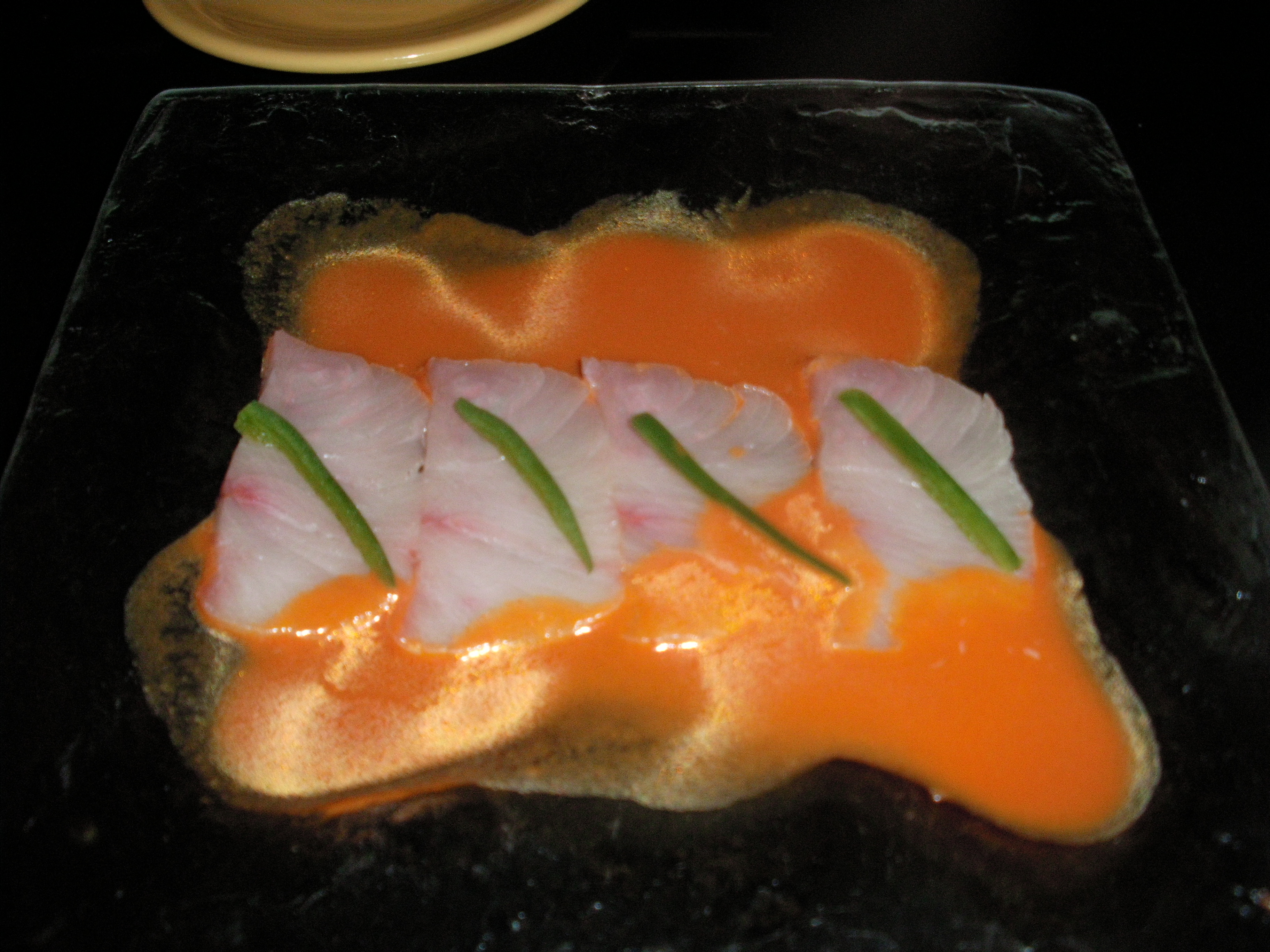 Meike hat sich eine Platte Sushi und Sashimi bestellt und ich habe ein Omekase-Menü bestellt. Omekase bedeutet soviel wie „in die Hand des Kochs geben“ – man lässt also den Koch wählen, was man bekommt. Und das war eine gute Idee, denn was dann kam, was wirklich sehr interessant und gut.