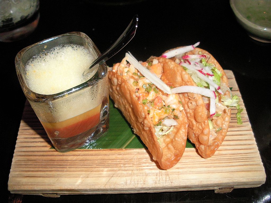 In dem Laden wird eine Mix-Küche aus japanischen und südamerikanischen Speisen angeboten und das hat uns so interessiert, dass wir uns einen Tisch reserviert haben. Was auch gut war, denn wir haben anscheinend den letzten freien Tisch bekommen.