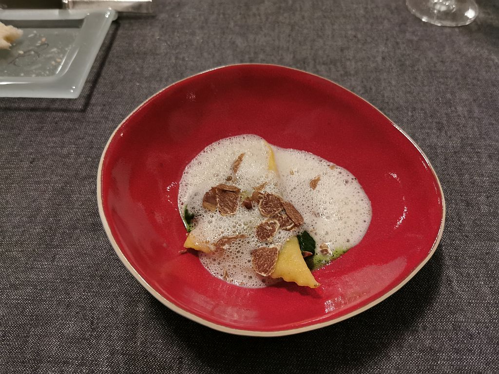 Letzter Gruß war ein Schlutzkrapfen mit Maroni, Spinat und Albatrüffel.