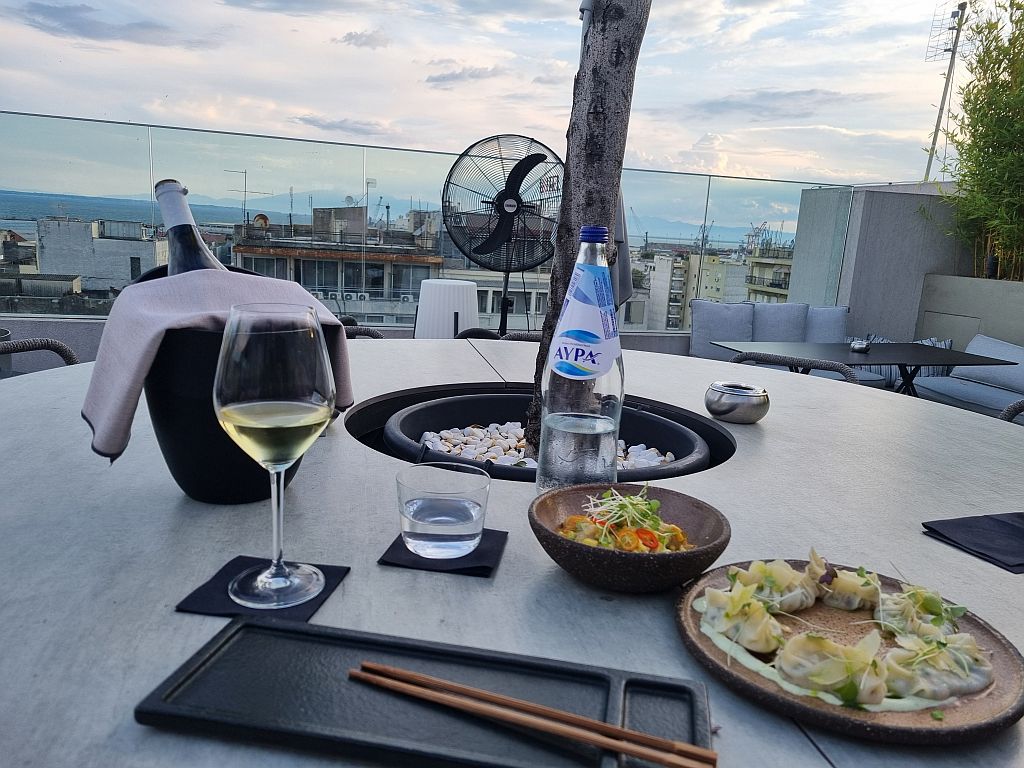 Zum Abendessen hatten wir uns einen Tisch in der Rooftop-Bar reserviert, da dort aktuell ein recht japanisch angehauchtes PopUp-Restaurant aufgemacht hatte.