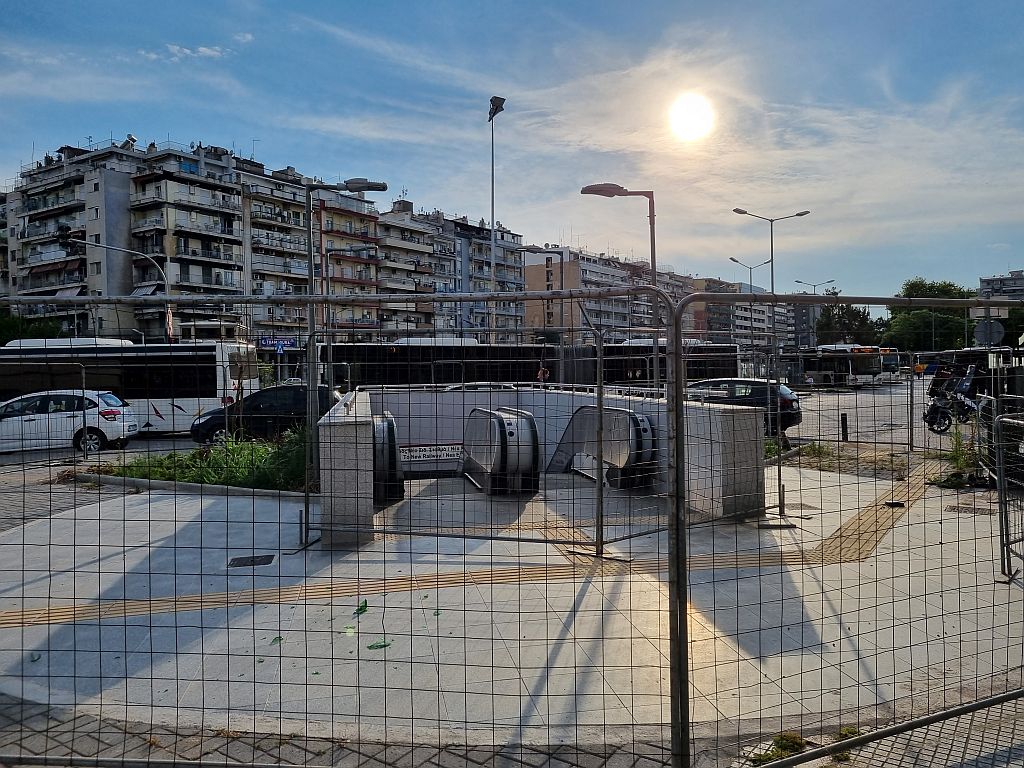 Vor dem Bahnhof dann ein überraschend modern aussehender Eingang. Und wie sich herausgestellt hat, soll Thessaloniki bald eine U-Bahn bekommen!