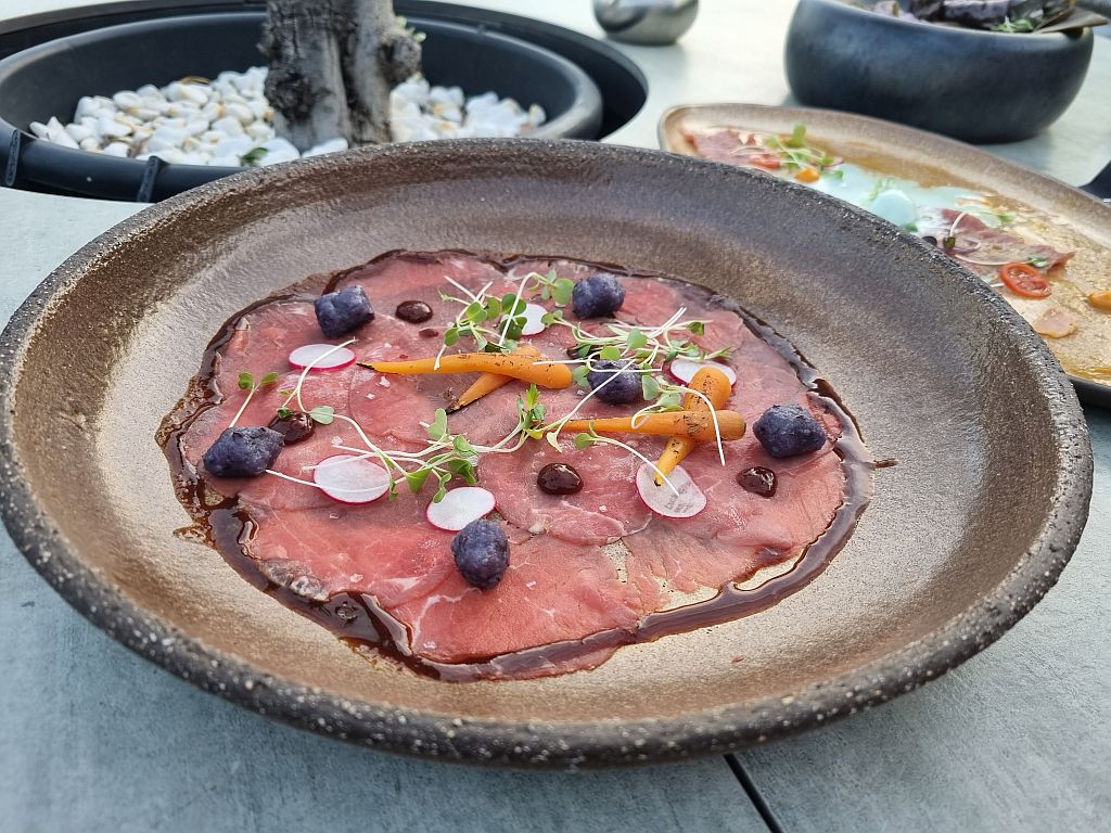 Zum Abschluss dann noch sehr kaltes (vermutlich zu spät aus der Kühlung geholtes) Carpaccio vom Rind.