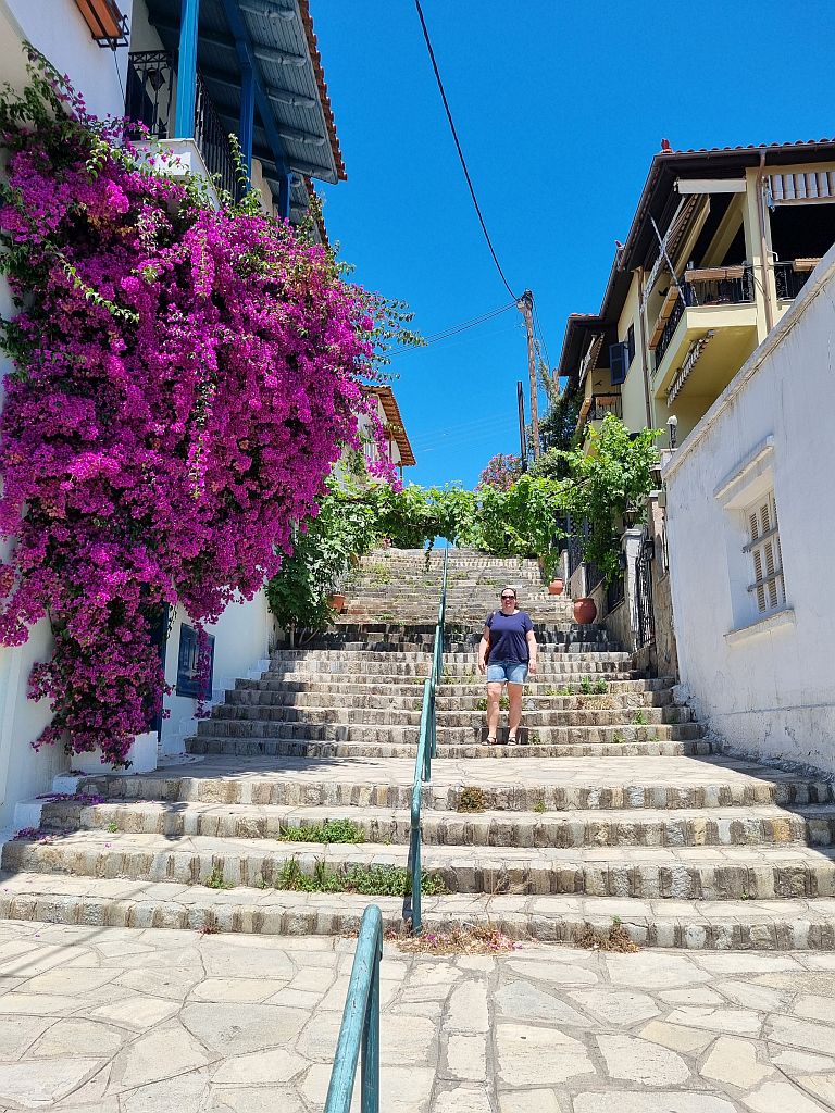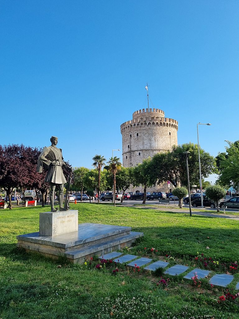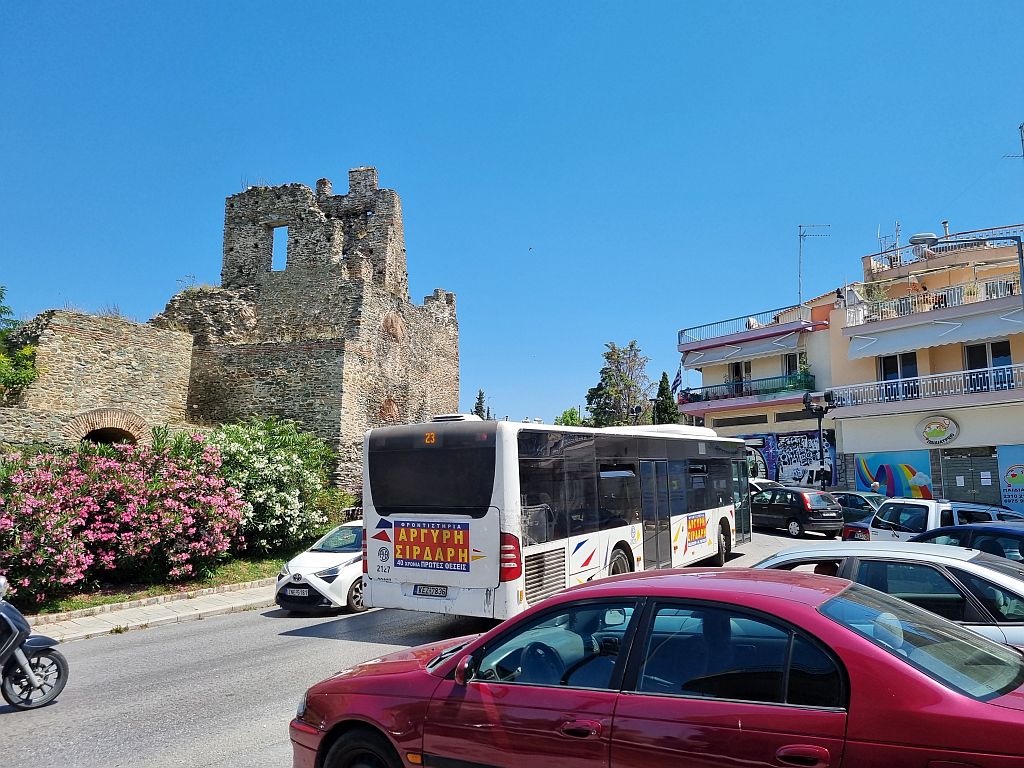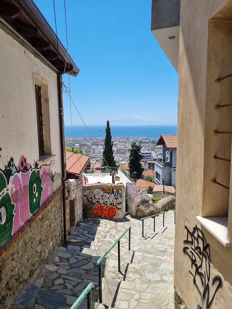 Der zweite Tag unseres Kurzurlaubs stand unter dem Thema „Kultur“. Die App „GPS my city“ sollte wieder einen auf eigene Faust zu gehenden Weg vorgeben, durch den wir vor allem die Oberstadt von Thessaloniki erkunden sollten. Und „Ober“stadt ist wortwörtlich zu nehmen, denn Ano Poli, wie sie auf griechisch heißt, liegt tatsächlich knapp 400 Meter über dem Meeresspiegel und damit echt hoch über der Gegend wo wir gestern unterwegs waren.