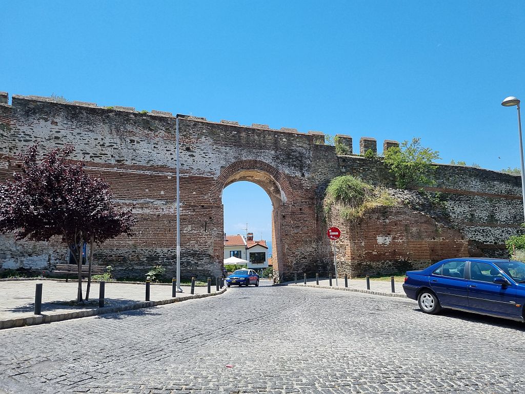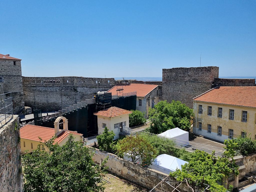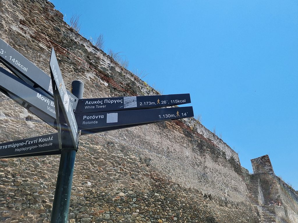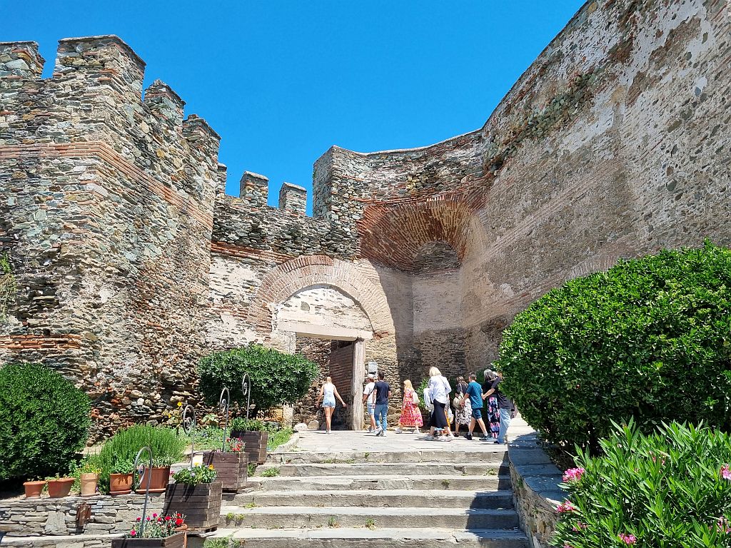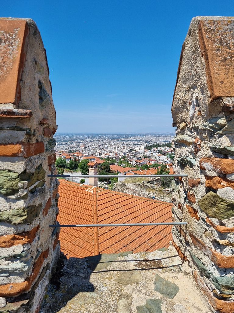 Quatsch, aber was hier oben auf jeden liegt ist der erste Punkt auf unserer Route: Das Heptapyrgion, eine Festung in der byzantinischen und osmanischen Zitadelle im nordöstlichen Teil der Akropolis in der Oberstadt. Es war Sitz der Garnison des Osmanischen Reichs bis zum Ende des 19. Jahrhunderts. Die Mauern um die Akropolis waren nur noch in Ruinen vorhanden, wohingegen die Festung selber sehr gut erhalten war. Auch wenn wir sie erst auf einem Umweg gefunden haben.