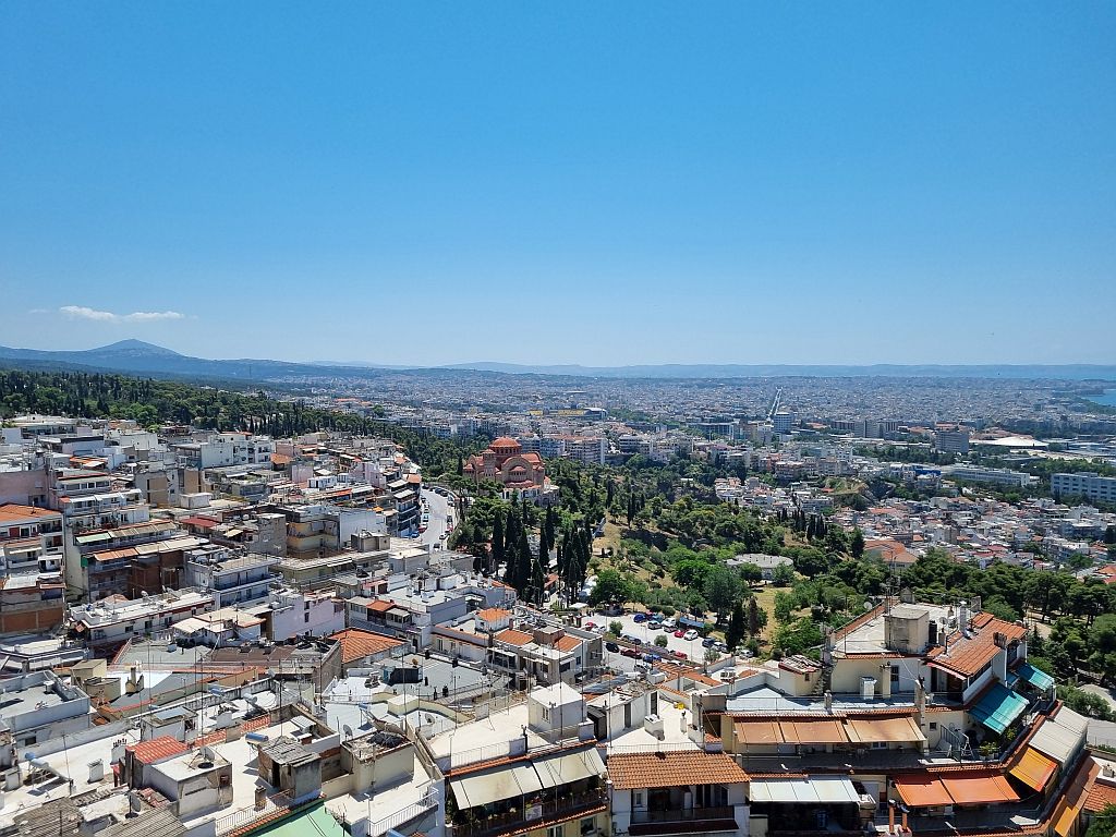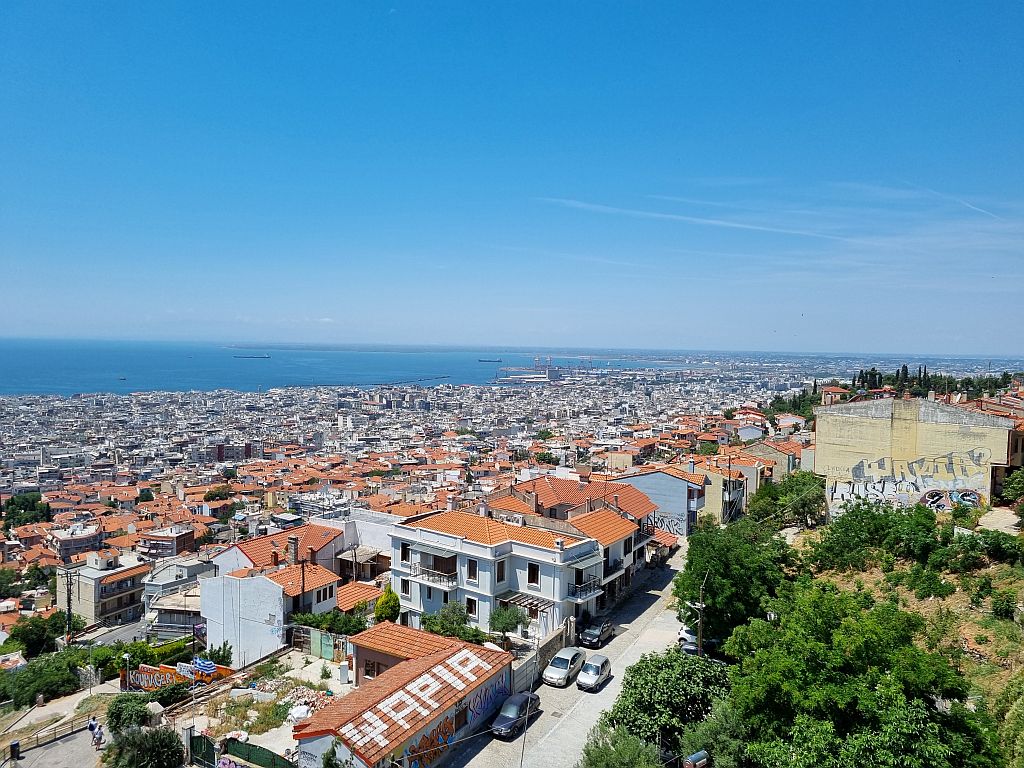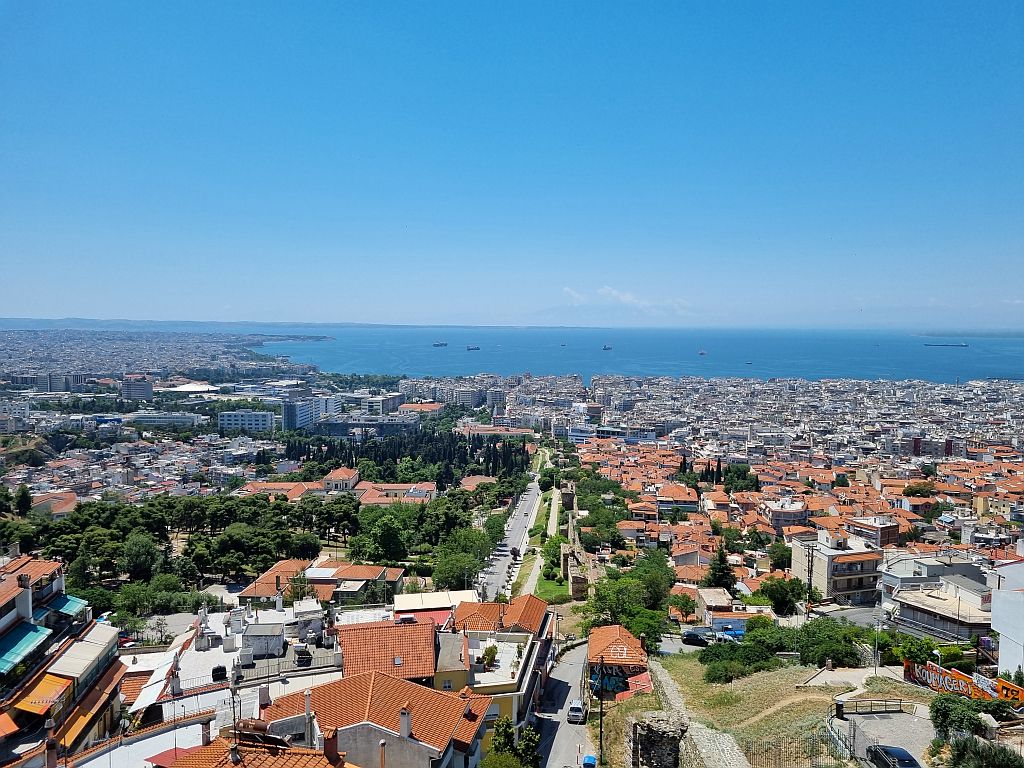 Der weite Blick über den Thermäischen Golf bietet bei guter Sicht sogar die Möglichkeit den etwa 80 Kilometer entfernte Olymp zu sehen.