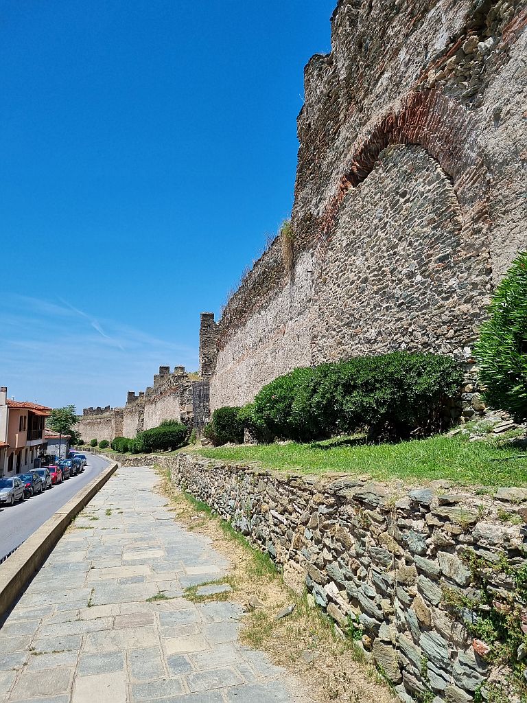 Die ehemalige Stadtmauer verdeutlicht die renovierten Anteile der Oberstadt, hier dominieren die Befestigungsanlage zur Verteidigung der Stadt mit der sogenannten Zwischenmauer, die die Gegend der Akropolis von der Oberstadt, dem Tor von Anna Palaiologina und dem imposanten runden Alyseos Turm oder Trigoniou Turm trennte, wo die nordöstliche Seite der Stadtmauer endet. Gebaut wurde diese Festung im 15. Jahrhundert auf der Stelle älterer Teile der byzantinischen Festung der Stadt.
