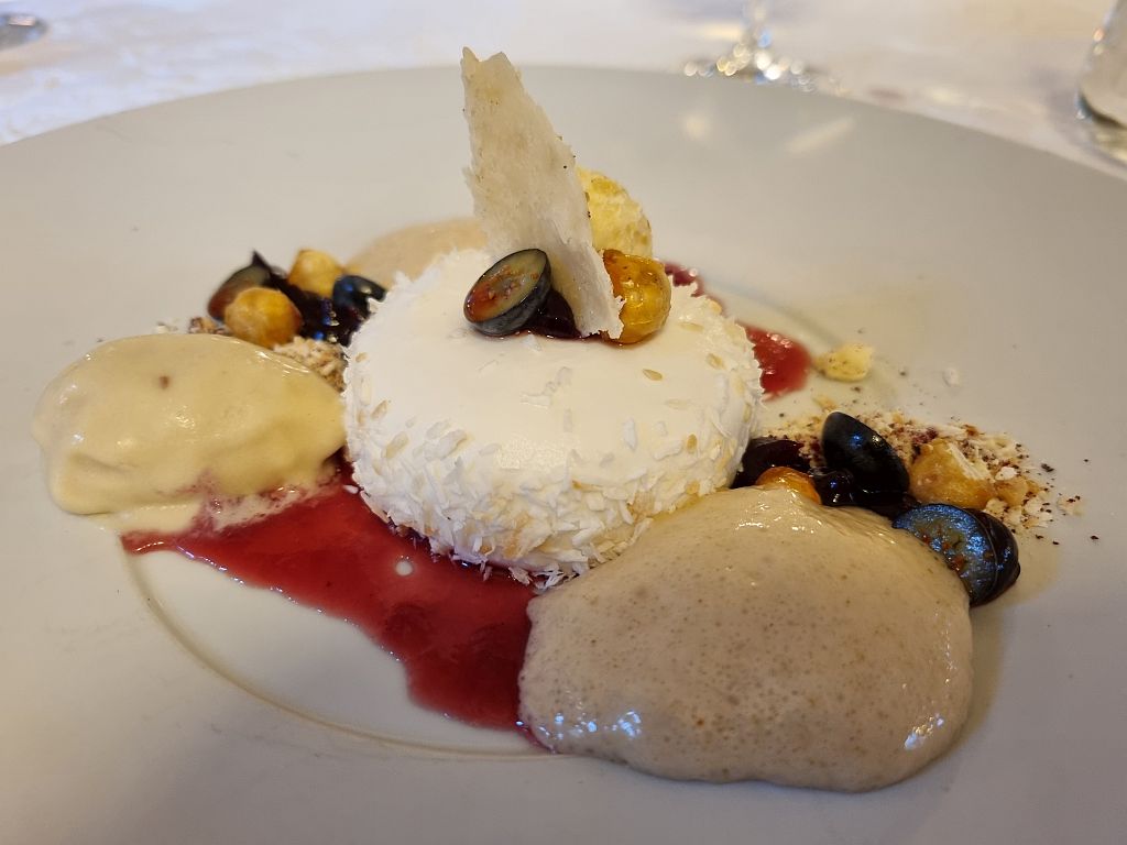 Zeit für den Abschluss und hier wurde es dann doch schon wild-kreativ: Kokosnuss, Blaubeere und Haselnuss in verschiedensten Texturen und Zubereitungen.