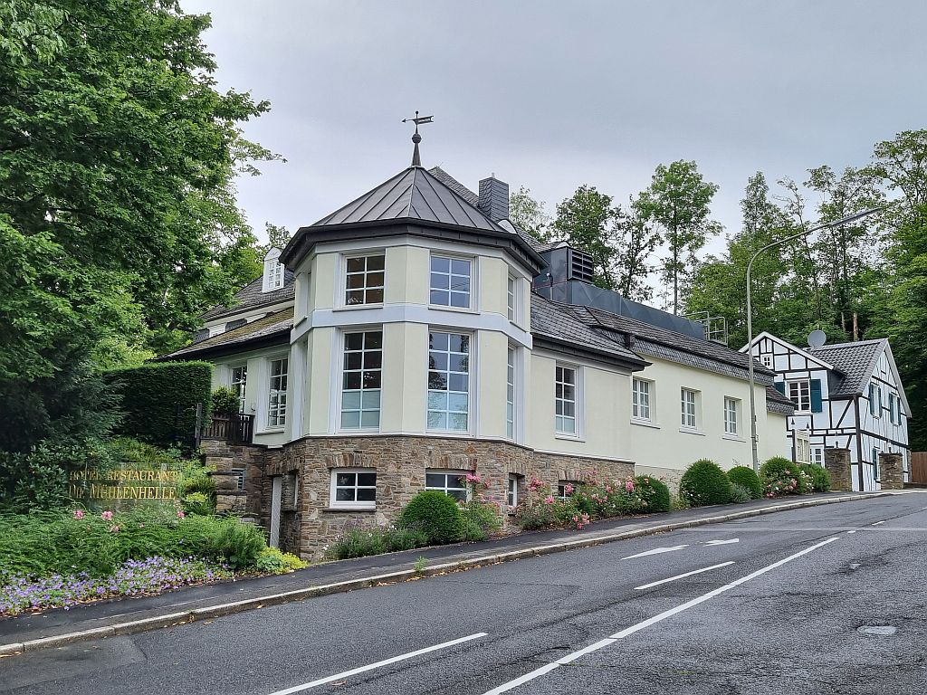 Des Rätsels Lösung liegt gleich neben dem Kaufland in Dieringhausen, etwa 800 Meter vom Bahnhof aus die Kölner Straße entlang und in die Hohler Straße rein: Die Mühlenhelle! Die Gourmet-Adresse im Oberbergischen und gerade für Jens ein Teil seiner Geschichte und seiner Heimat. Hier hat schon vor 25 Jahren die Firma von Jens Vater die Weihnachtsfeier veranstaltet (nur einmal, vermutlich wegen der Kosten) und hier hat seit 2007 das Ehepaar Quendler das Zepter in seiner Hand.