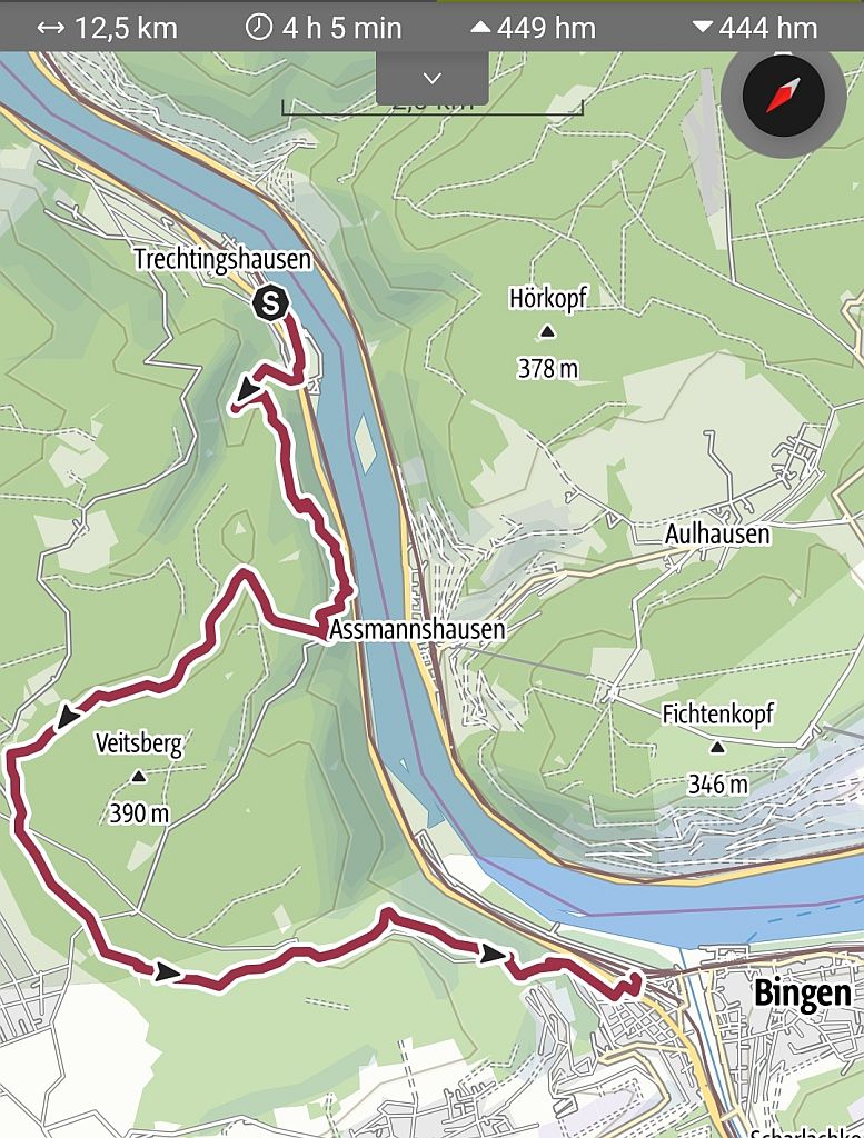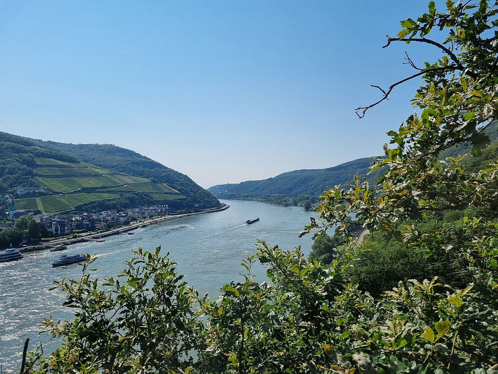 Ab hier wurde die Etappe dann etwas belebter, eine Dame, die von Bingen nach Trechtingshausen wanderte erzählte uns von „vielen Hunden, die frei herumlaufen“ und beschwerte sich über die Junggesellinenabschiede in der Regionalbahn. Unaufgefordert. Naja … die „vielen Hunde“ waren dann 2 Hunde, die bei ihren Herrchen und Frauchen standen und im Morgenbach badeten.