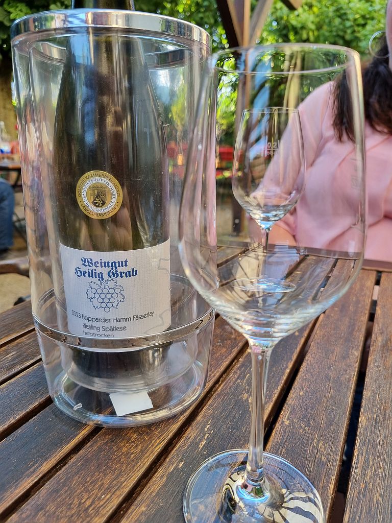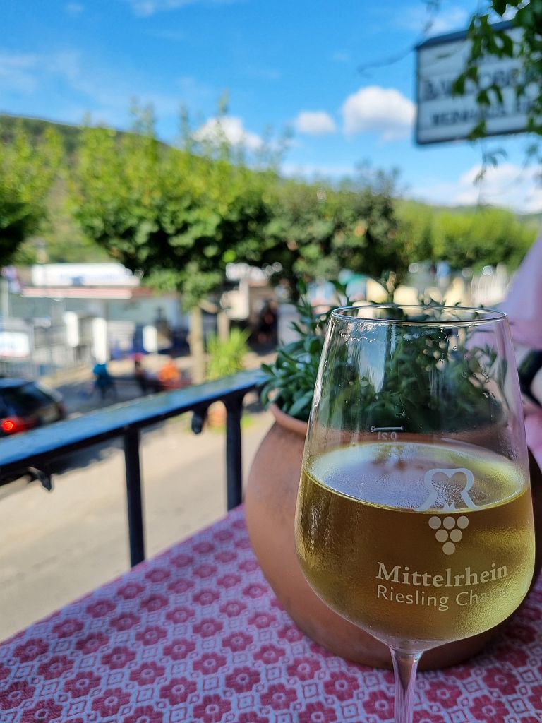 Donnerstag Abend, eine Couch in Köln-Dellbrück. Meike und Jens überlegen, was sie am Wochenende machen wollen. Und was sie essen wollen. Angesichts von schwülen 31 Grad Celsius war der Drang aufwendig und vor allem mit viel Hitze zu kochen eher … gering. Und aus irgendwelchen Gründen schaute Jens dann in seinem Handy auf eine noch offene Buchungsseite und … nun … Freitag Nachmittag saßen wir in Boppard und tranken auf der Außenterrasse der Weinstube Baudobriga einen schönen Mittelrhein-Riesling.