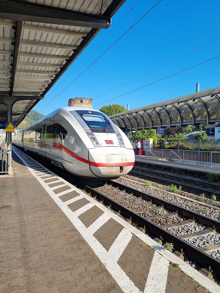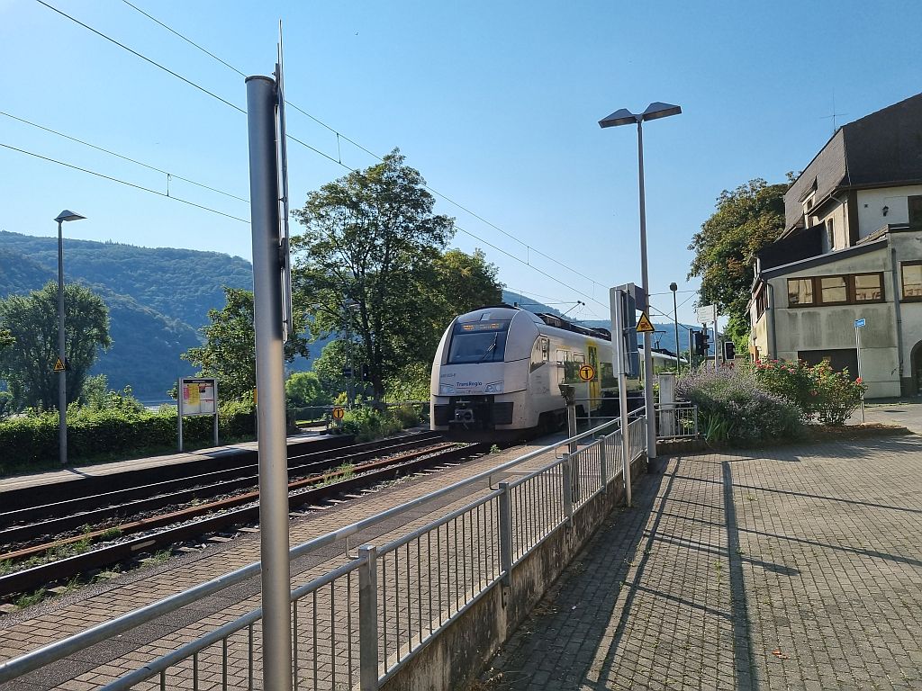Immerhin ergatterten wir noch einen Sitzplatz und mussten auf dem Weg nach Trechtingshausen, wo die letzte Etappe beginnt, nur ein paar Radfahrer aushalten. Die eine Exemplarstudie für „Mansplaining“ abgegeben hätten, so wie der Mann seine Frau die Welt, Bahnfahren und überhaupt alles erklärt hat.
