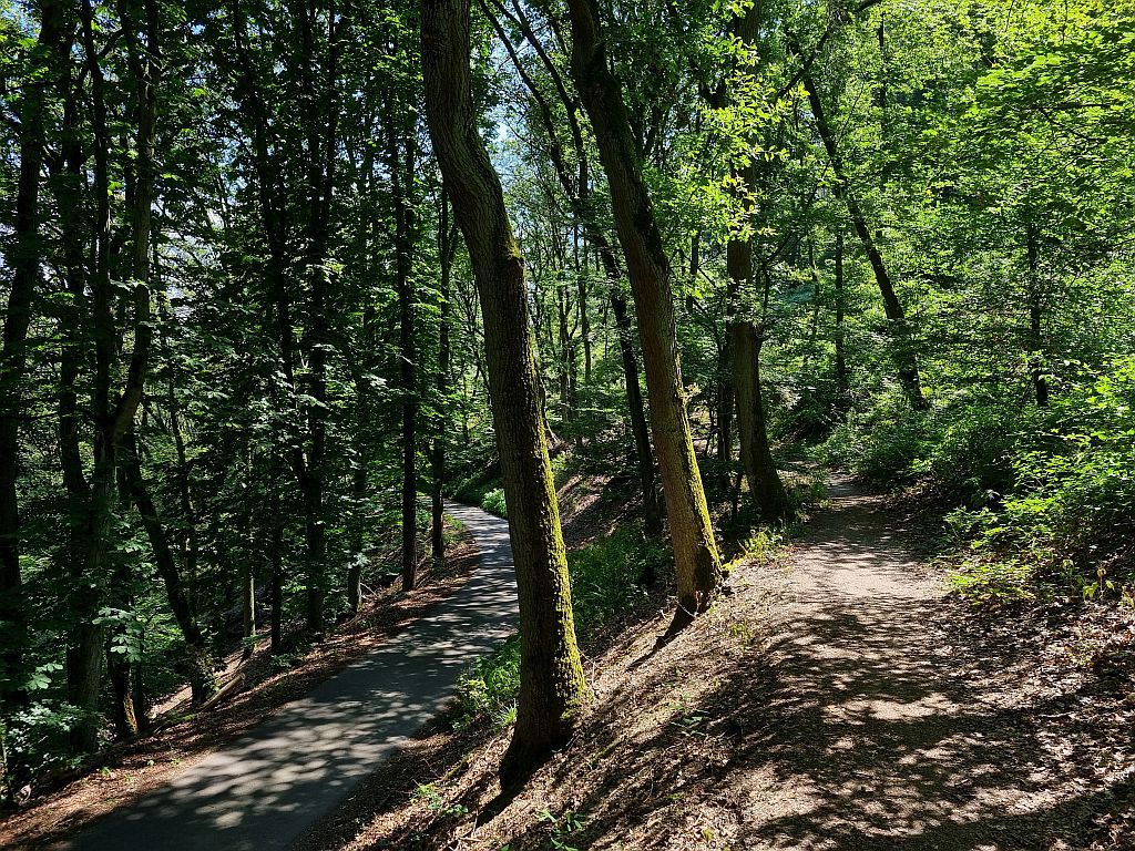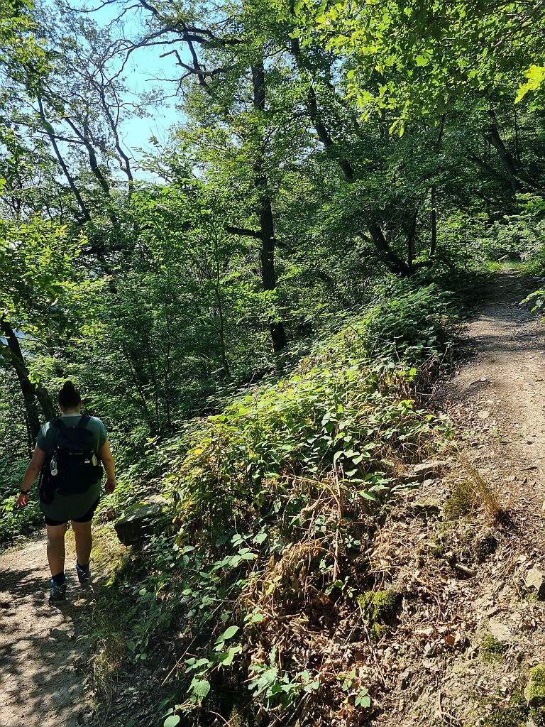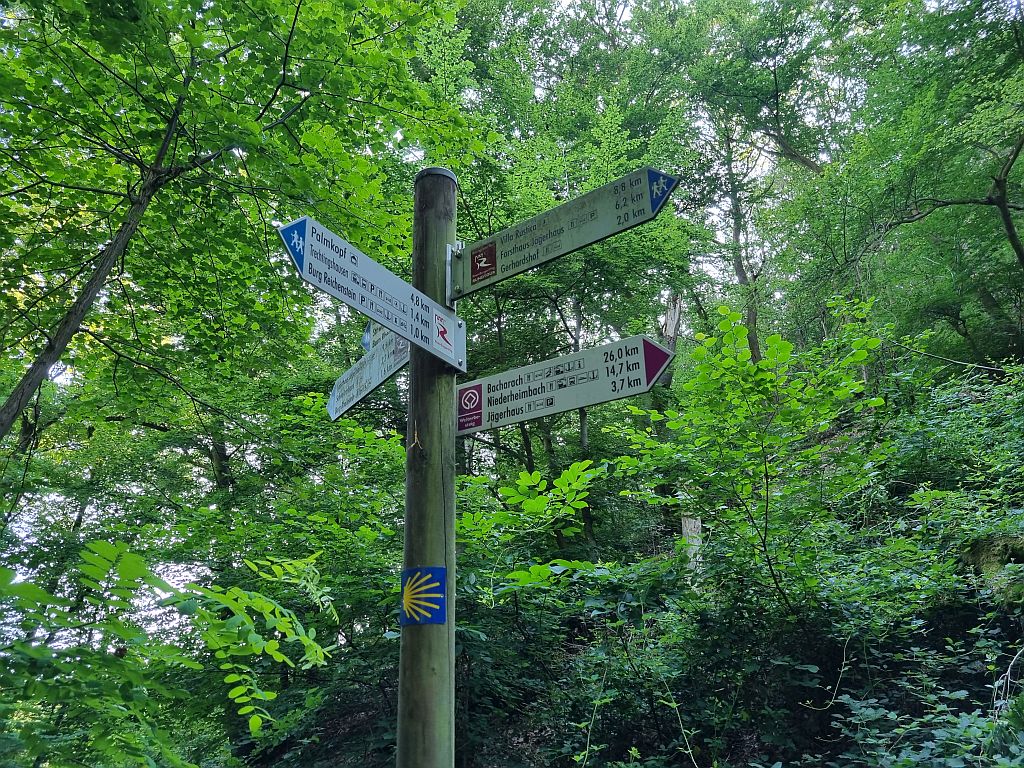 Bingen kam immer näher, zumindest auf der Karte. Der Wald schien aber kein Ende nehmen zu wollen und so ging es eine ganze Weile neben einer Straße auf einem etwas oberhalb verlaufenden Weg entlang. Die Begegnungen mit Menschen nahmen auch wieder ab, was auch gut war, denn einige davon waren schon etwas irritierend. Zum Beispiel die Gruppe mit freiem Oberkörper und Boombox inklusiver Pop-Musik – das war schon etwas nerviger.