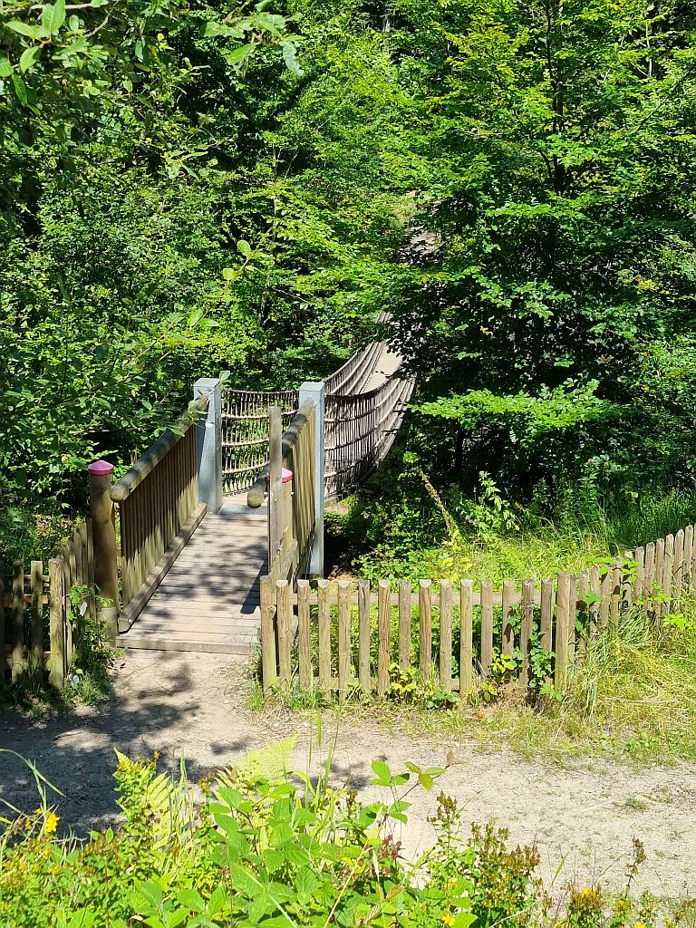 Auch eine Hängebrücke hat es hier, da sind wir aber nicht drüber gegangen. Einerseits wurde es langsam richtig warm und auch schon etwas drückend.