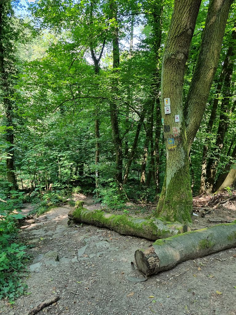 Von hier aus wanderten wir dann weiter durch den Wald – die ganze Etappe war sehr „waldig“, was bei den steigenden Temperaturen super war. Der Wald schützte etwas vor der Sonne, bot frische Waldluft und hier und da auch ein paar erfrischende Windböen.