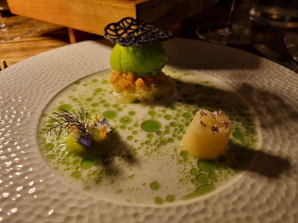 Ein fantastisches Ende von diesem Menü. Handwerklich weit über dem „Standard-1-Stern-Restaurant“, wenn es sowas überhaupt gibt. Aber wir hatten das Gefühl, dass es hier immer noch etwas kreativer, handwerklich feiner und mit 1-2 Komponenten mehr von Statten geht. Was Spaß machte und jeden Gang für uns spannend gemacht hat.
