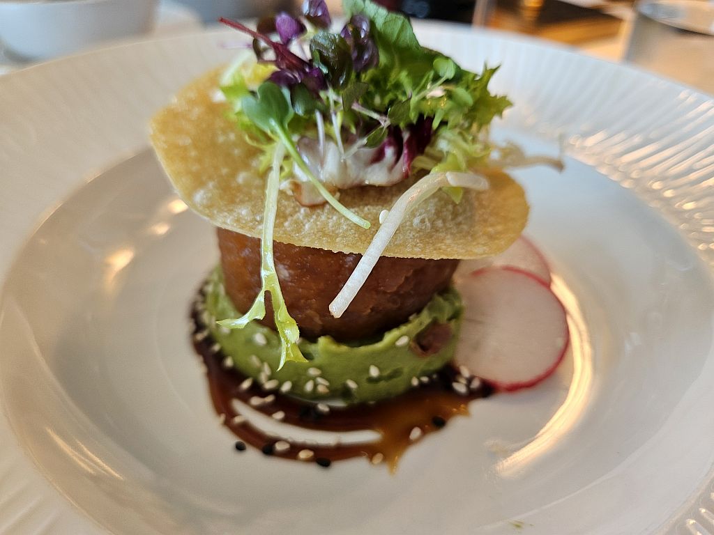 Meike dagegen entschied sich für das Spicy Tartar vom Tuna mit Limette, Minze und Avocado. Gut temperiert und mit einer einzelnen, fiesen Chili in der Avocadocreme.