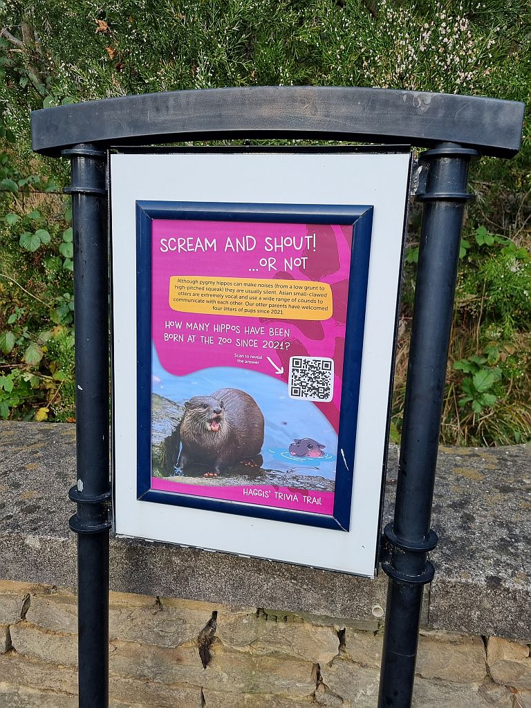 Der neue Star des Zoos ist übrigens die kleine Zwergflusspferd mit dem witzigen Namen „Haggis“! Überall gibt es Poster, die darauf hinweisen, dass ein neuer Star in der Stadt ist!