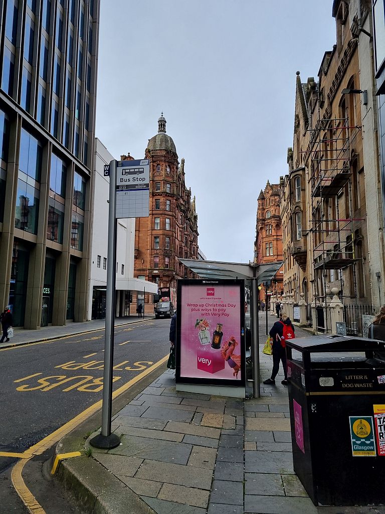 Viele Wege führen nach Glasgow, einer sogar direkt von unserer „Hausstation“. Wir haben uns aber für eine Umsteigeverbindung via Haymarket entschieden, da wir dort ein Frühstück kaufen wollten. Also erst einmal in die Stadt rein und dann ab nach Glasgow über eine der 4 elektrifizierten Strecken zwischen den beiden größten Städten Schottlands.