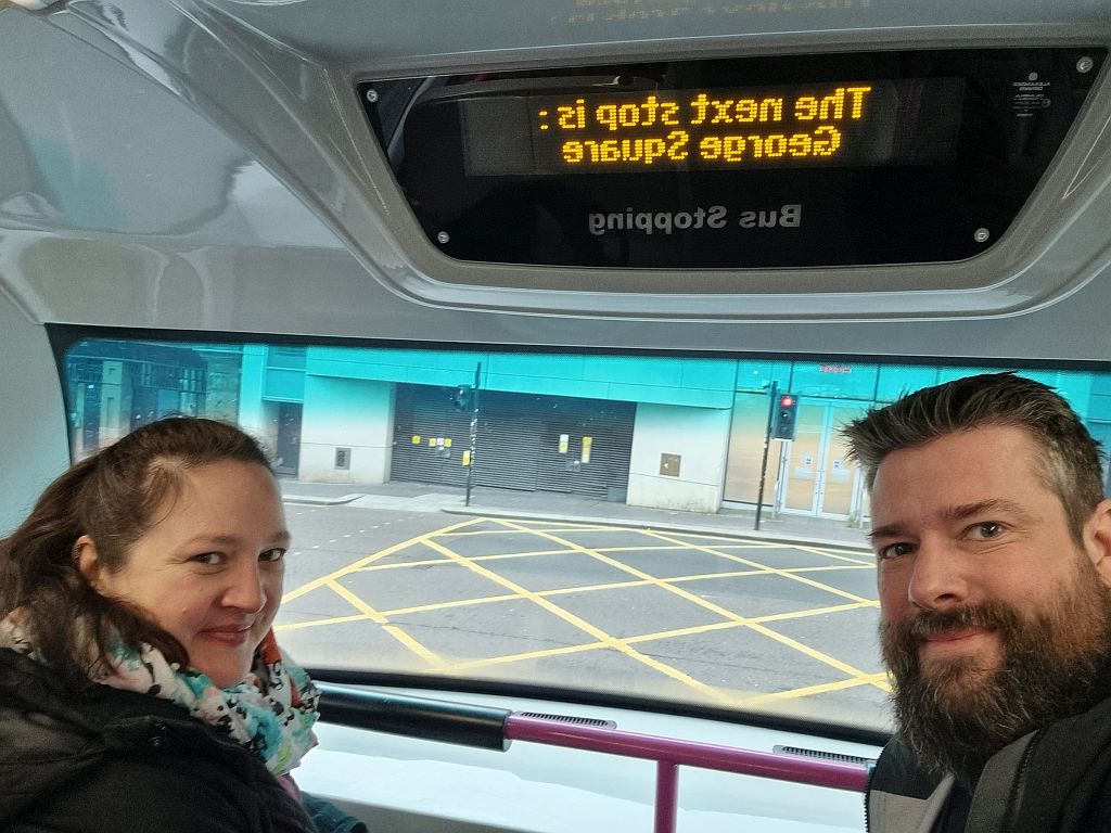 Und was macht man nun mit so einem kompletten Tag? Am Freitag beziehungsweise am Samstag hatten wir recht spontan die Idee entwickelt in eine Stadt zu fahren, durch die wir schon oft gefahren sind. In die wir und von der wir auch schon geflogen waren, die wir aber (abgesehen von einem Frühstück mit Tatjana und Thomas auf dem Weg zum West Highland Way 2019) noch nie außerhalb eines Bahnhofes oder Flughafens gesehen haben.