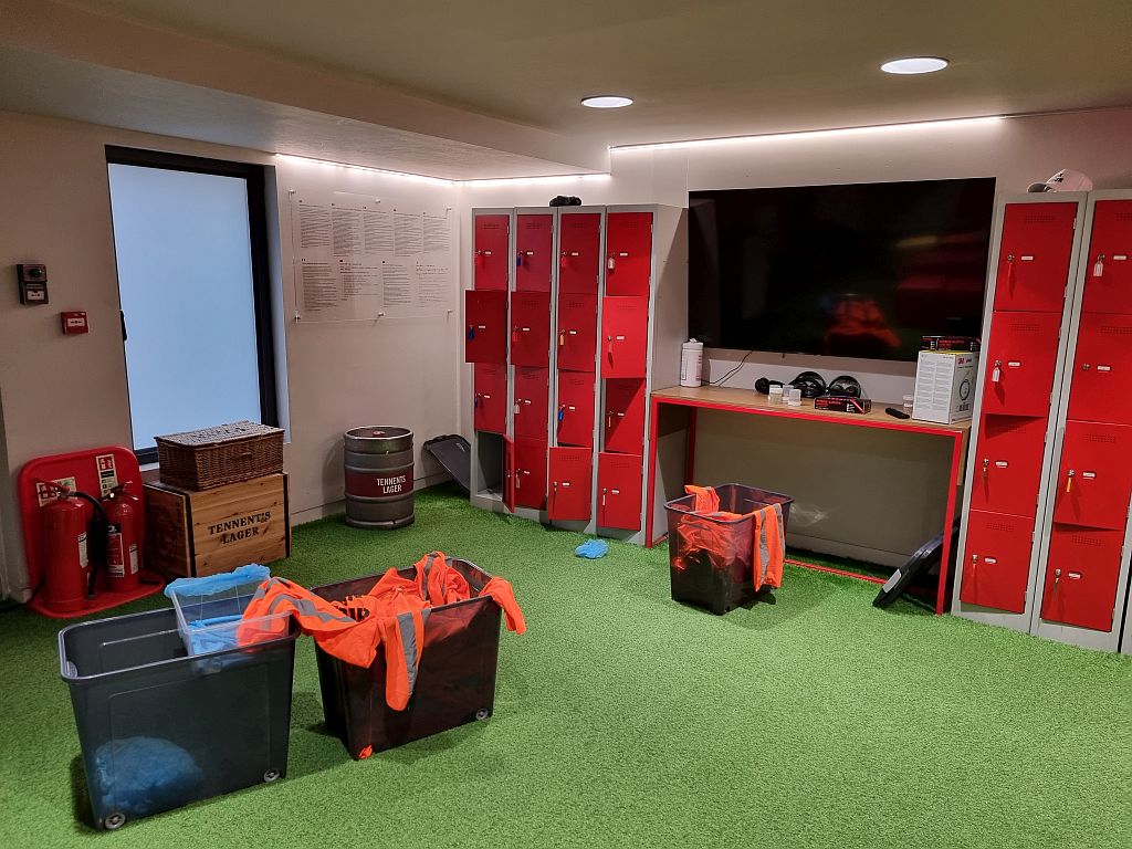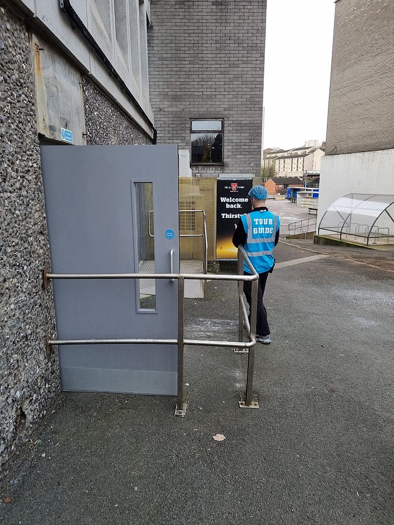 Für die Tour mussten wir in einen Raum eine Etage höher gehen, dort einen kurzen Vortrag über die Geschichte der Brauerei und der Familie Tennent hörn, eine Warnweste anlegen und dann ging es auch schon los.