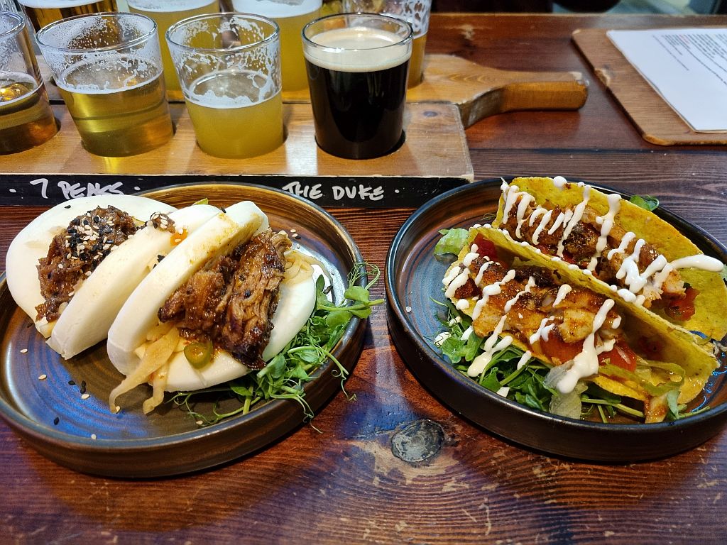 Und Bier gab es auch, sogar recht gutes. Neben dem wirklich sehr guten Essen, was wir uns dann bestellt haben. Unter anderem echt leckere Bao Buns mit Pulled Pork und Fisch Tacos.