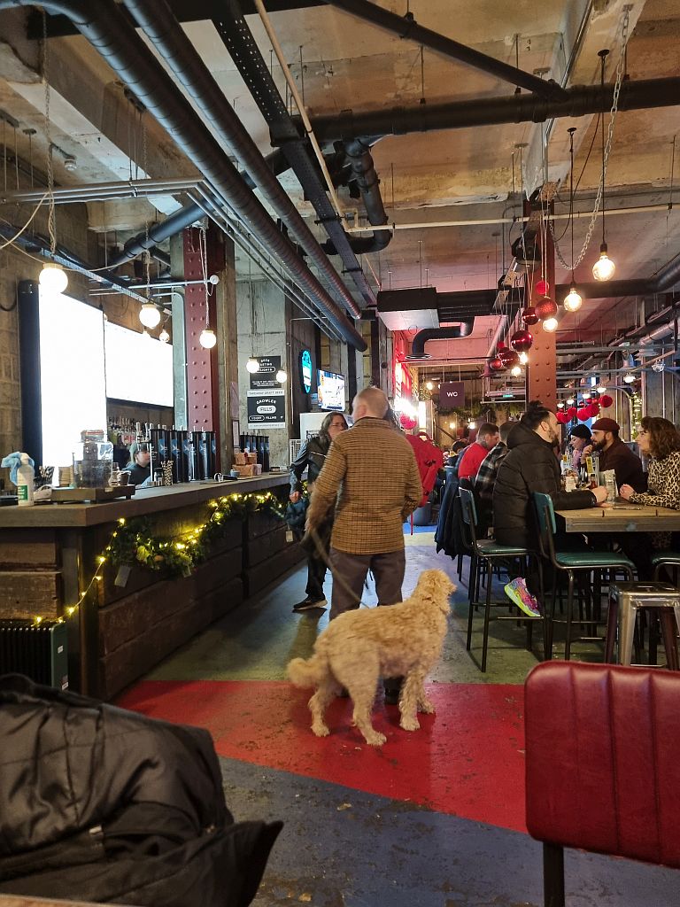 Im Brewdog haben wir uns dann an einem Hochtisch platziert und genossen ein, zwei Biere während wir uns aufwärmten. Und neben uns die Gäste und Hunde beobachteten.
