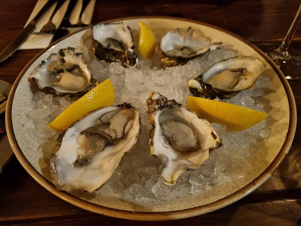 Und das tat das Restaurant auch, denn Jens konnte sein Austern-Depot wieder mit 6 sehr festen aber leckeren Loch Fyne Austern auffüllen.