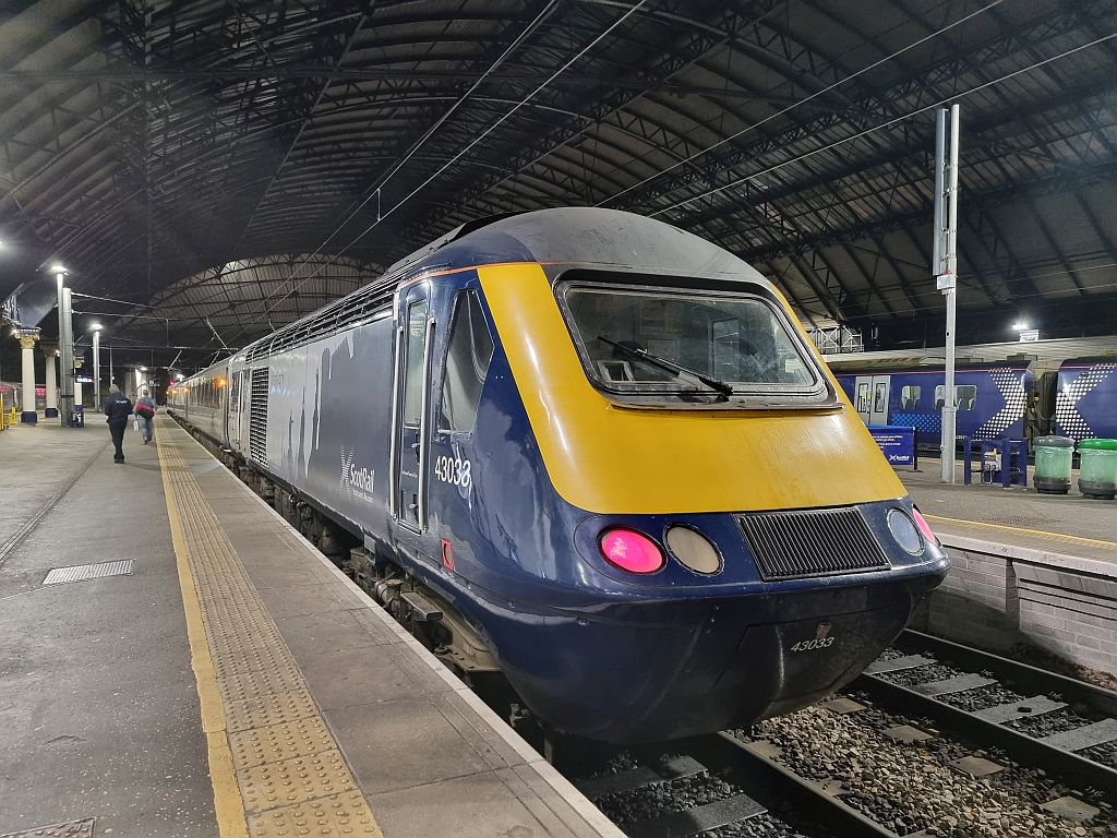 Der M&S im Bahnhof wurde gleich noch um zwei Cola, ein paar Wasabi-Nüsse und etwas Schokolade im Tausch gegen ein paar britische Pfund erleichtert und dann suchten wir unseren Zug. Leider nicht mit einem der zwischen 1975 bis 1982 erbauten Class 43 InterCity-Züge, die früher im ganzen Vereinigten Königreich unterwegs waren und inzwischen von ScotRail zwischen den Metropolen Edinburgh/Glasgow und Aberdeen/Inverness eingesetzt werden. Naja, nächstes Mal.