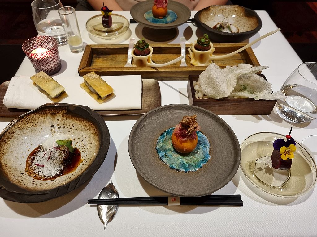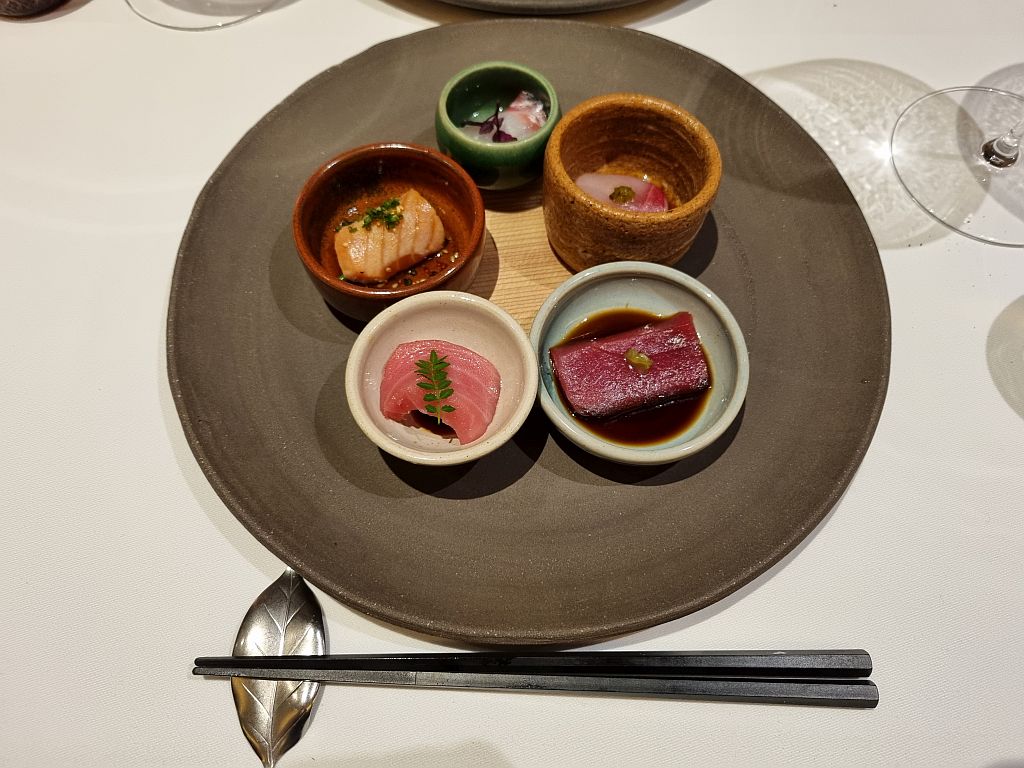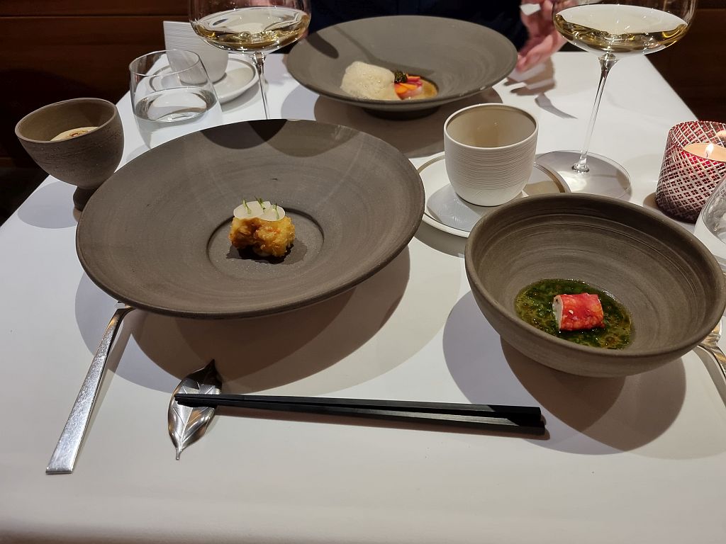 Wenn wir schon über die Präsentation sprechen: Jeder Gang erinnerte uns von dem verwendeten Geschirr, der Weise wie angerichtet wurde und dem ganzen Ambiente schon erheblich an Japan. Auch deswegen drehten sich unsere Tischgespräche oft um unsere bisherigen Reisen dorthin.