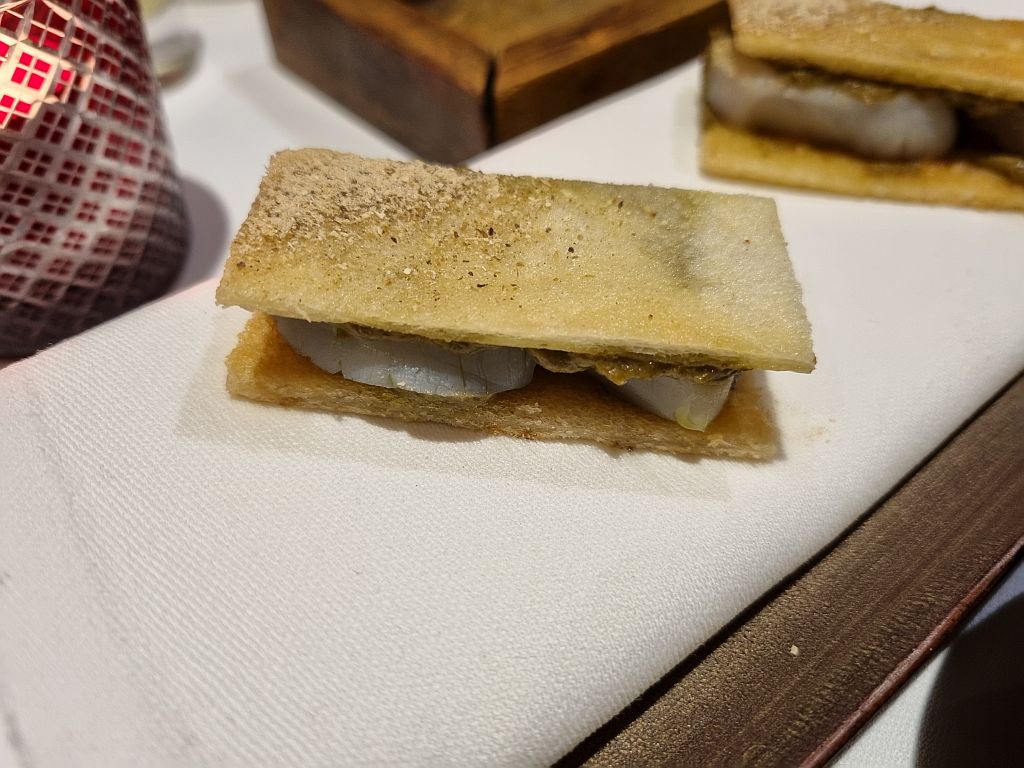 Jakobsmuscheln zwischen zwei sehr fettigen Trameziini. Leider der schwächste der Grüße unserer Meinung nach.